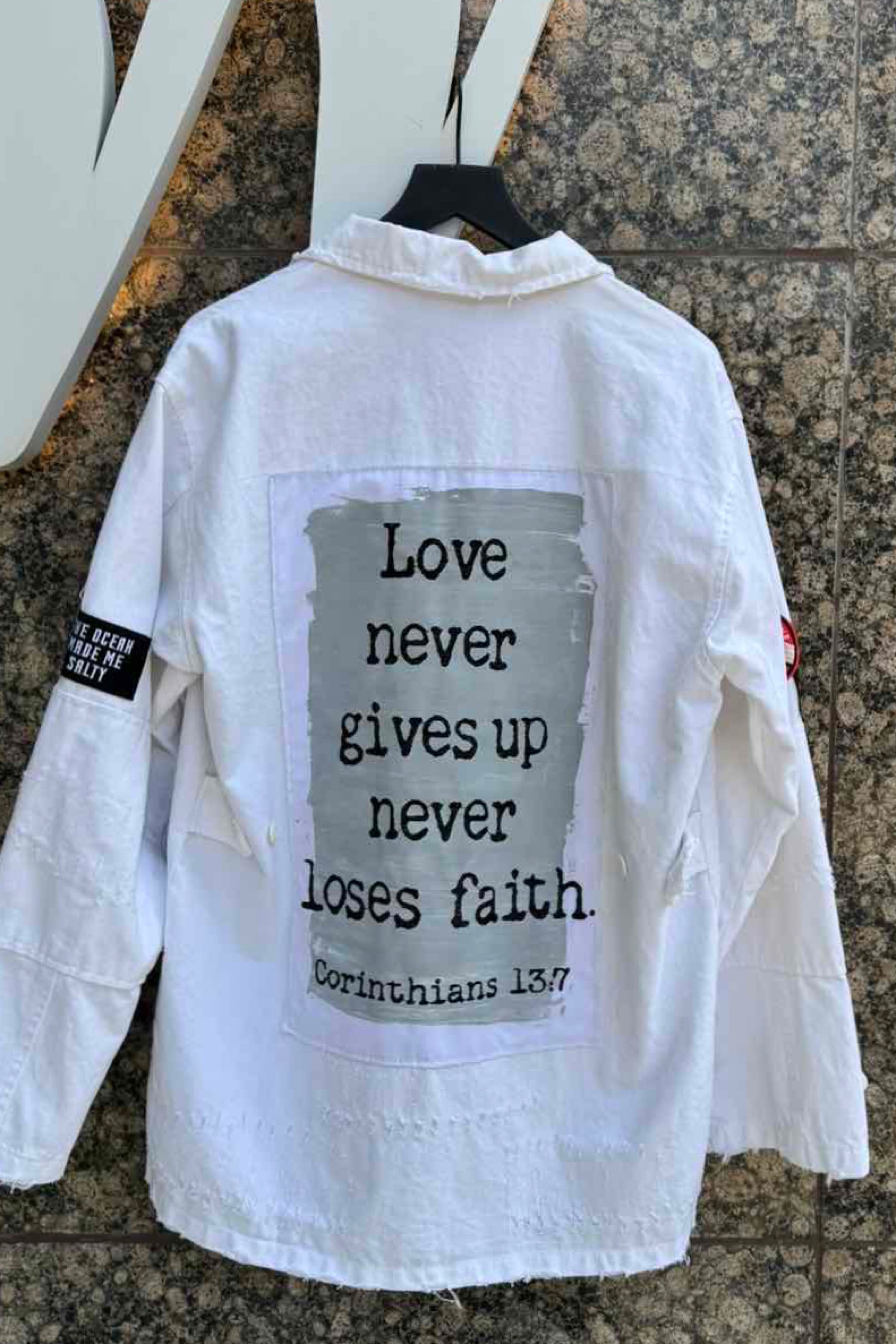 A jacket that speaks in layers—loud, lived-in, and unapologetically expressive. This is not just outerwear; it’s attitude stitched in every seam. Meant to be worn like a statement, not just styled!
