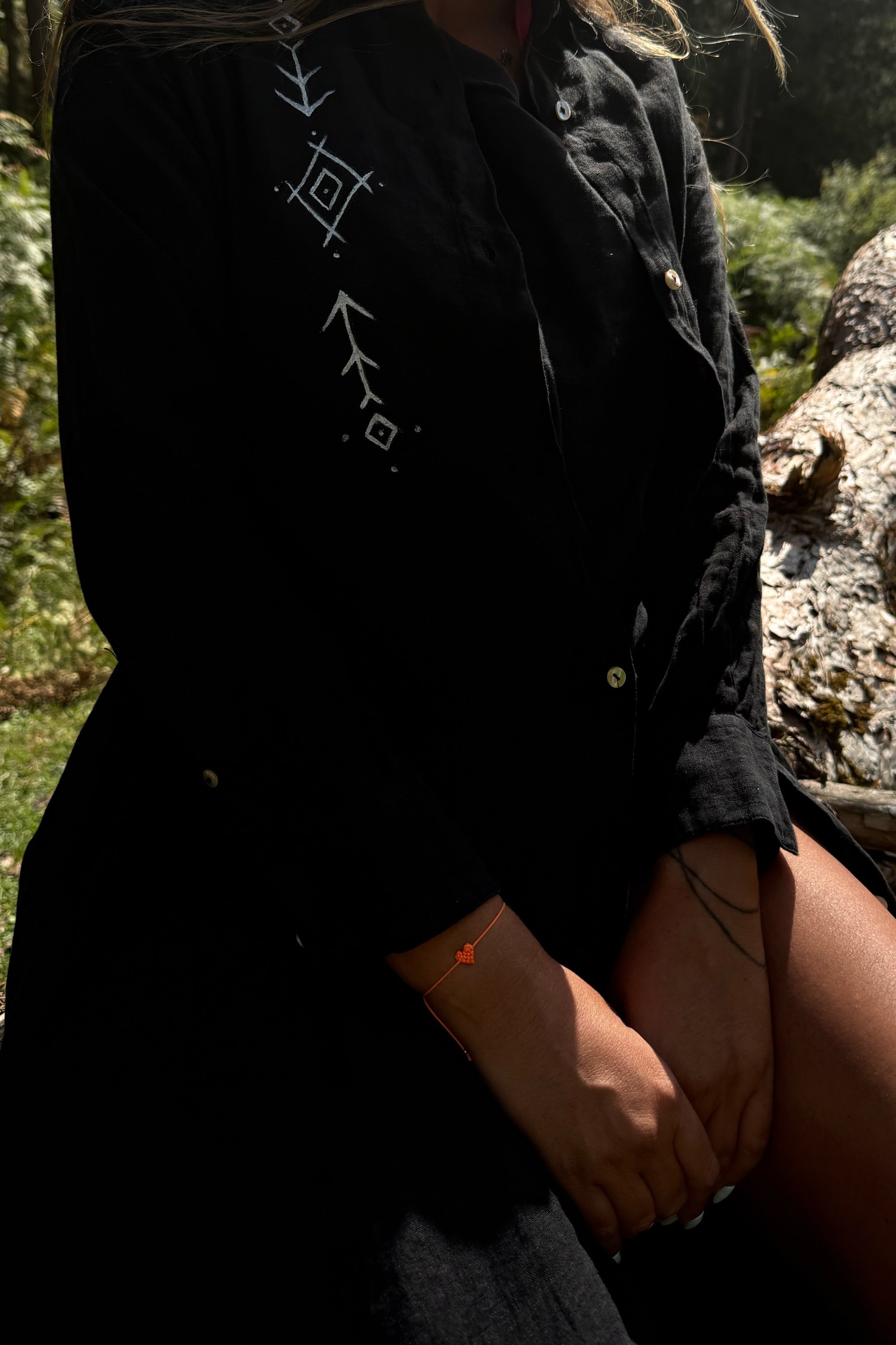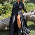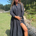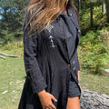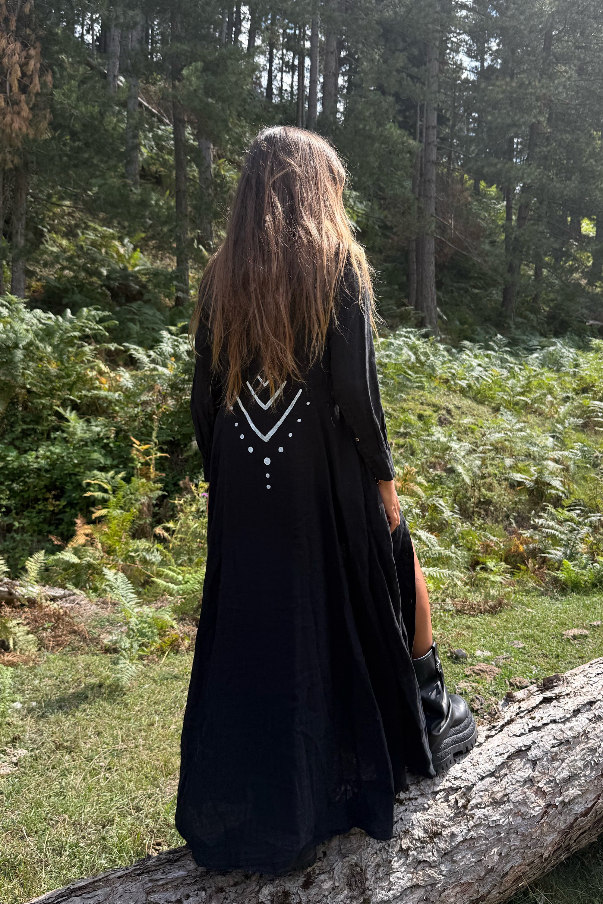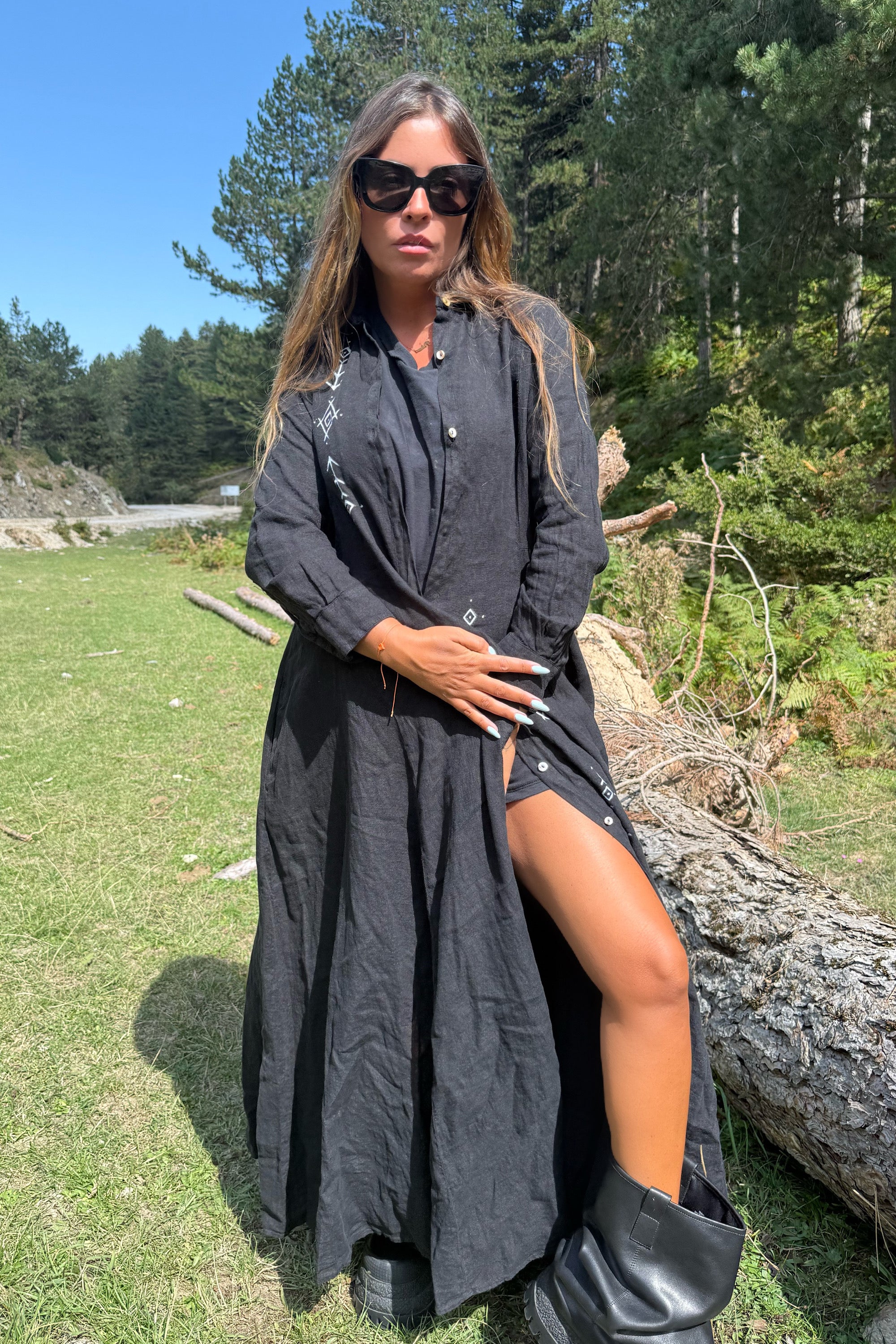 This shirt dress captures an effortless bohemian spirit with a free-flowing silhouette that feels both modern and timeless. Its artistic essence makes it a statement piece, blending ease with individuality. Designed for those who carry style with a sense of freedom and authenticity.