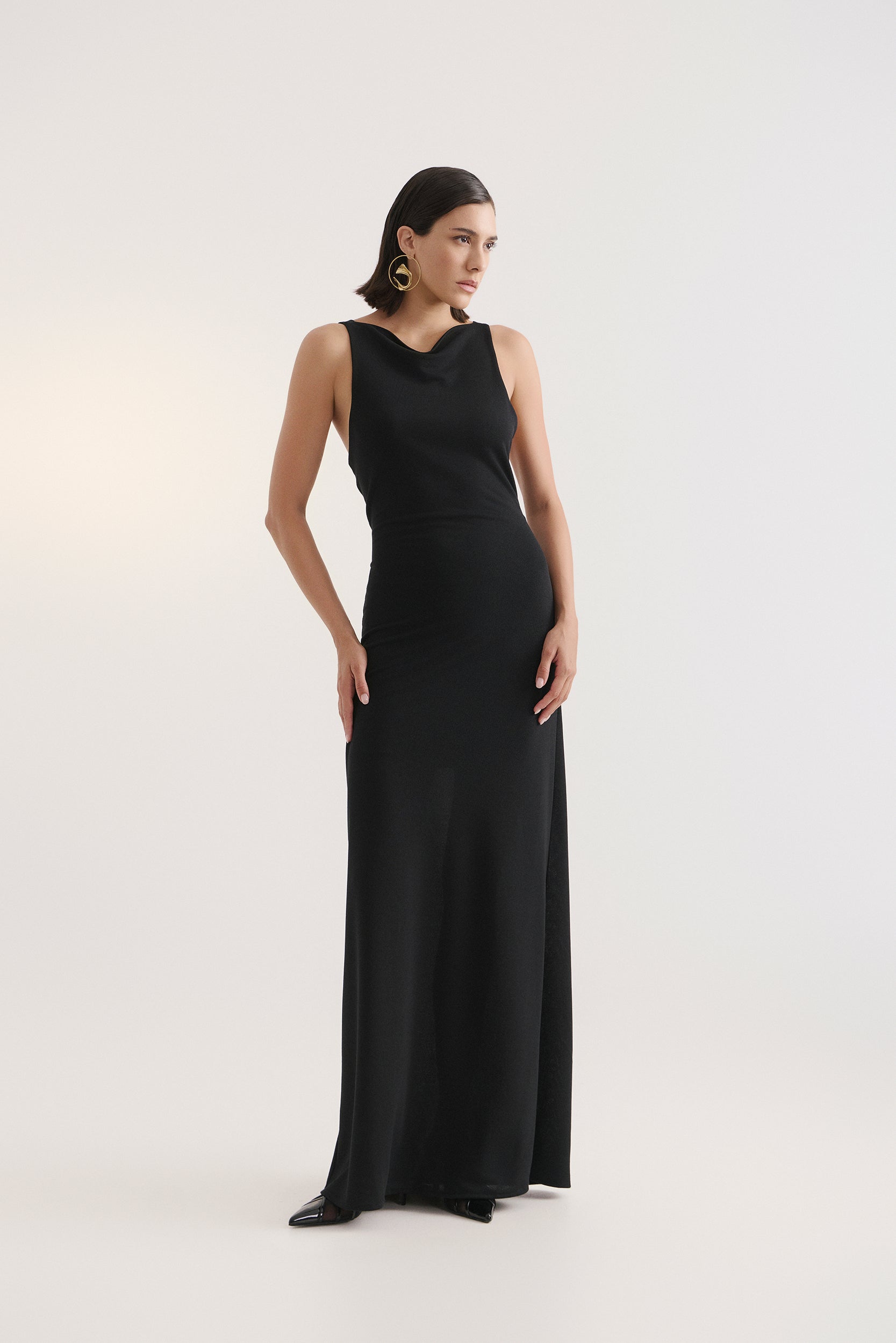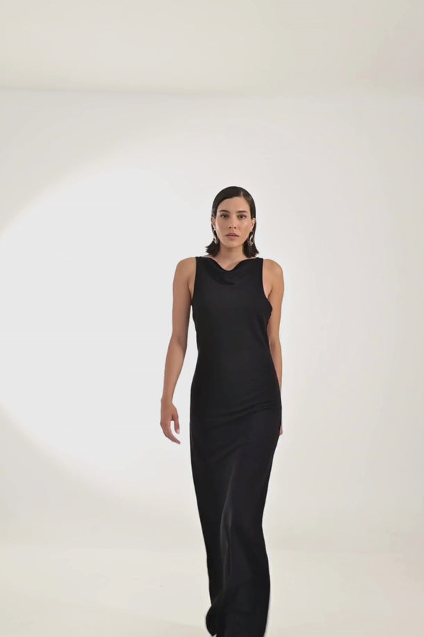 This maxi dress channels an effortless elegance with a modern edge. Designed to exude both sophistication and allure, it’s a piece that embodies timeless evening glamour. A refined staple for moments that call for confidence and presence.