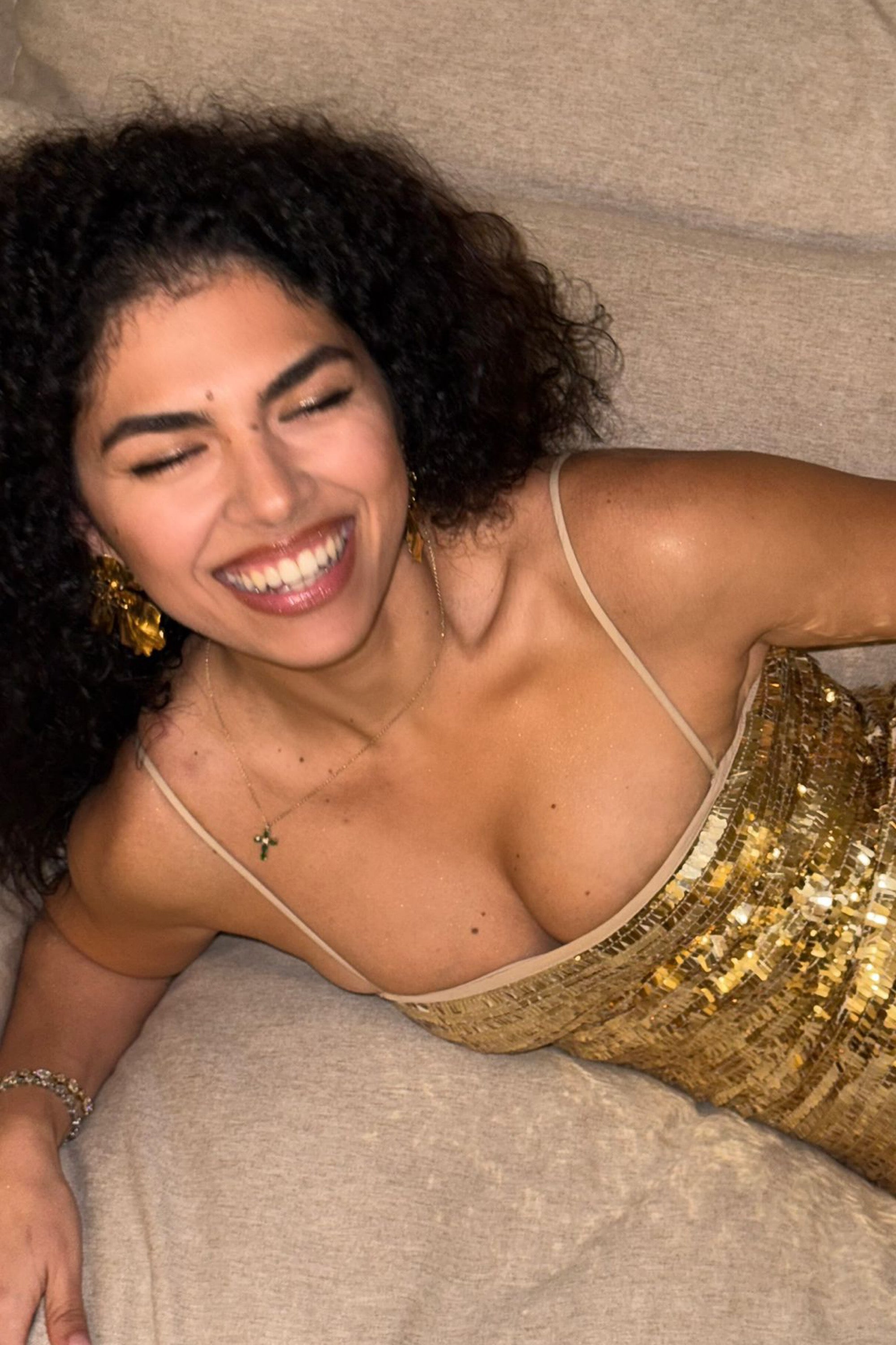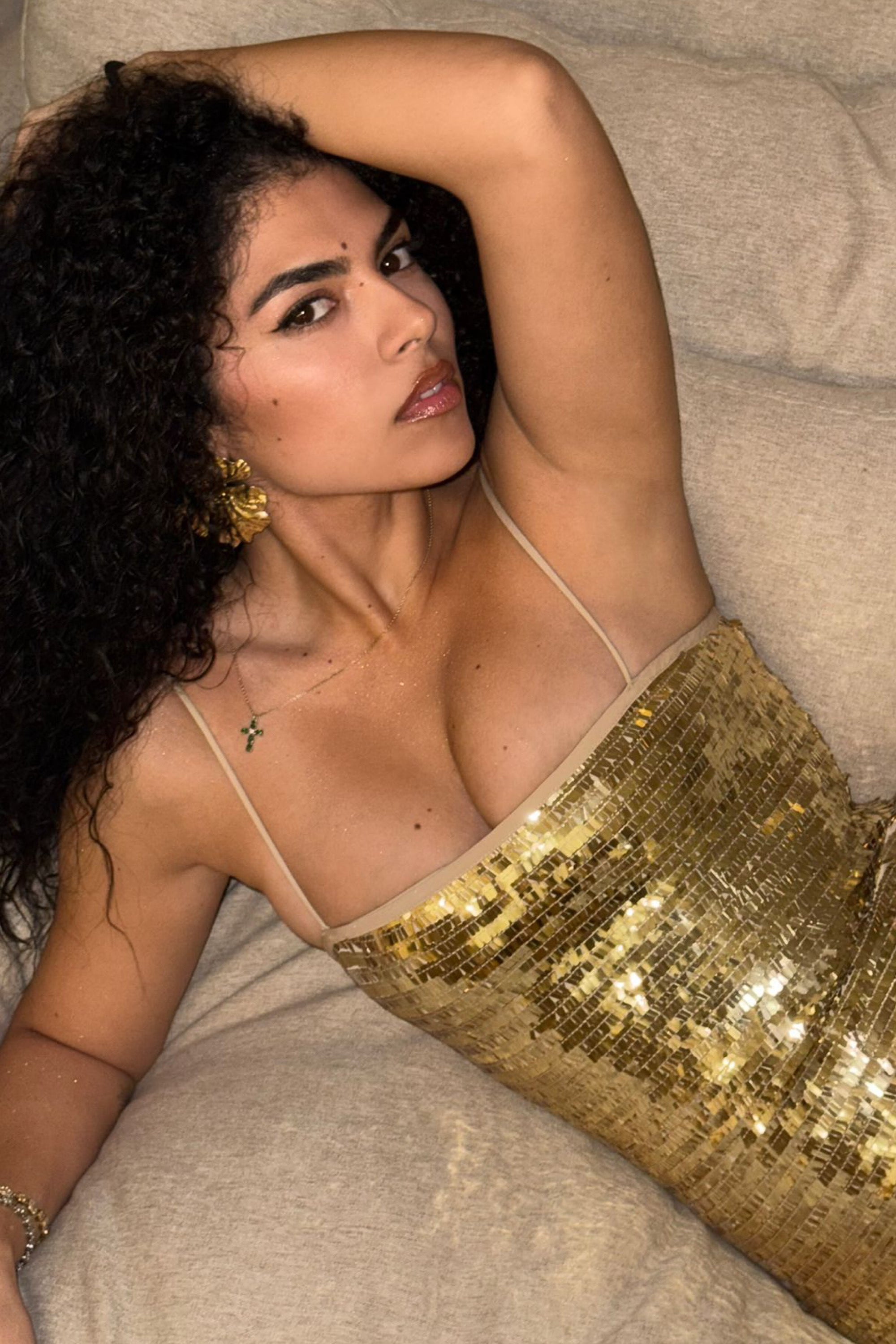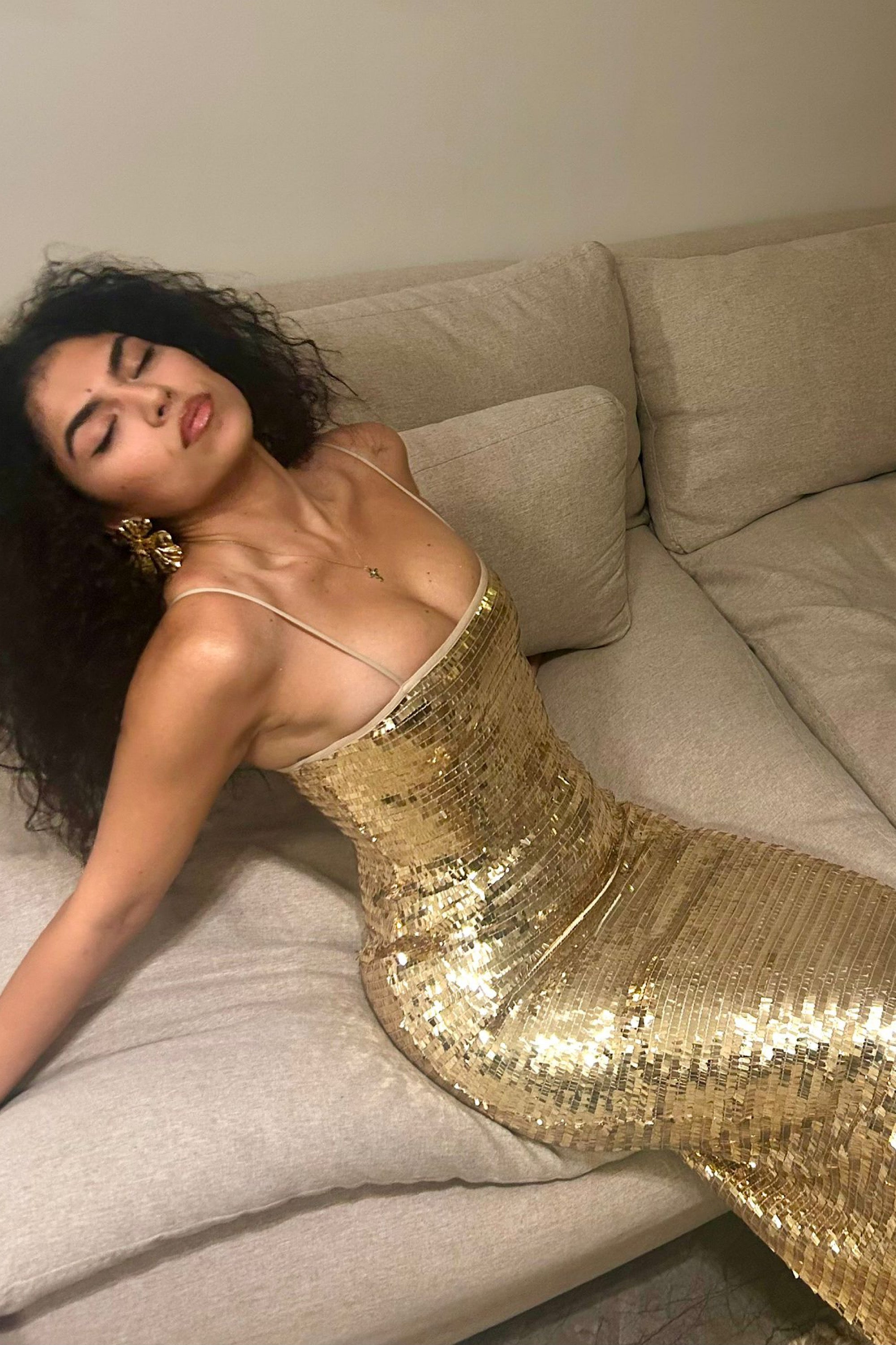 • Crafted from shimmering liquid gold sequins for a high-impact finish