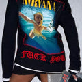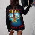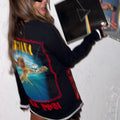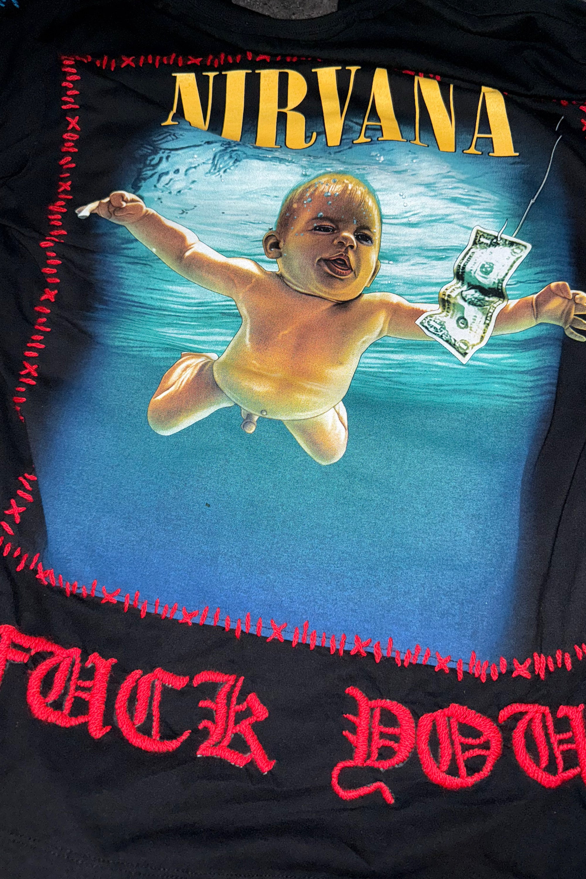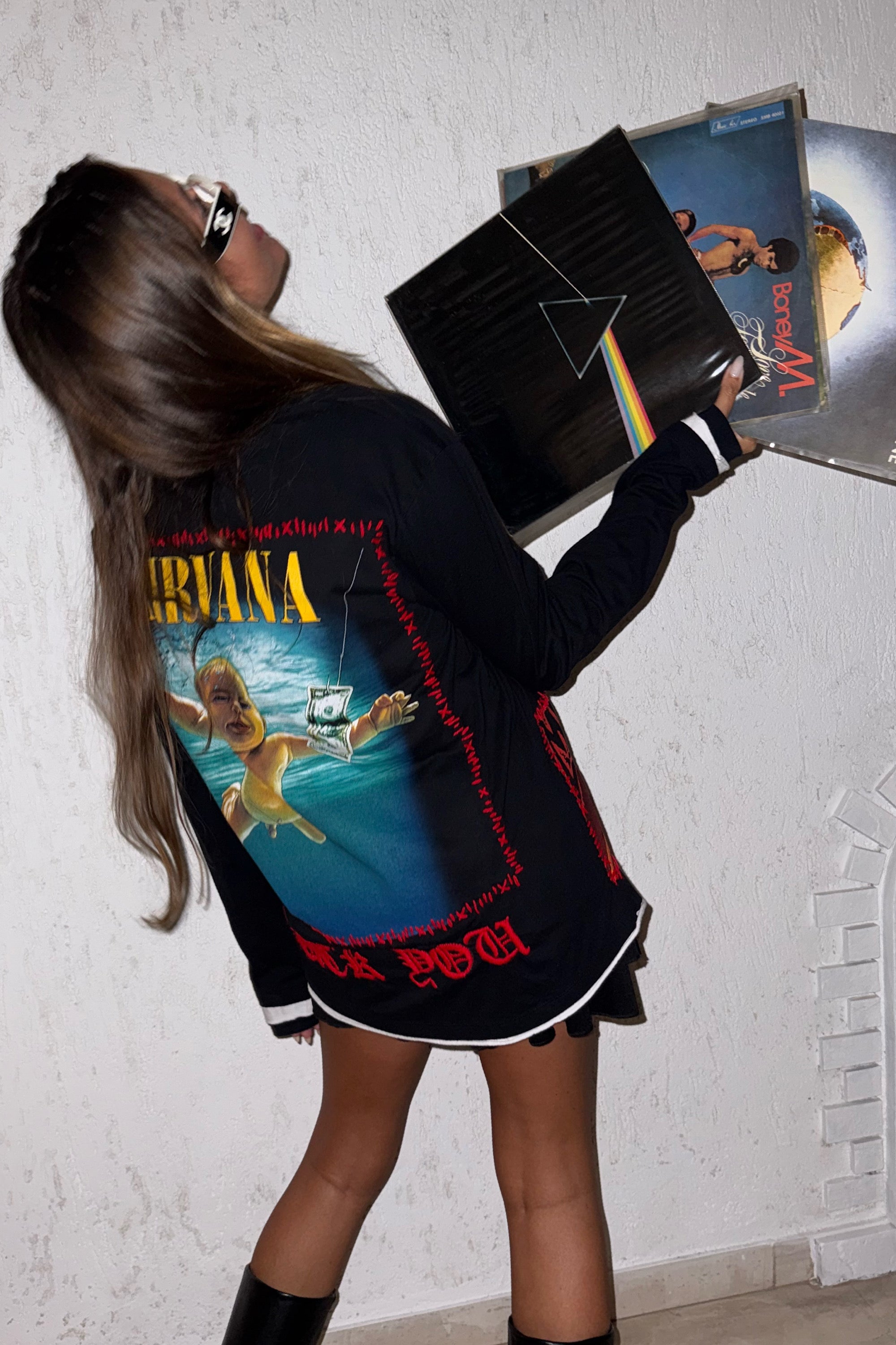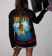 • Rock-inspired graphics with a bold large “NIRVANA” design on the back