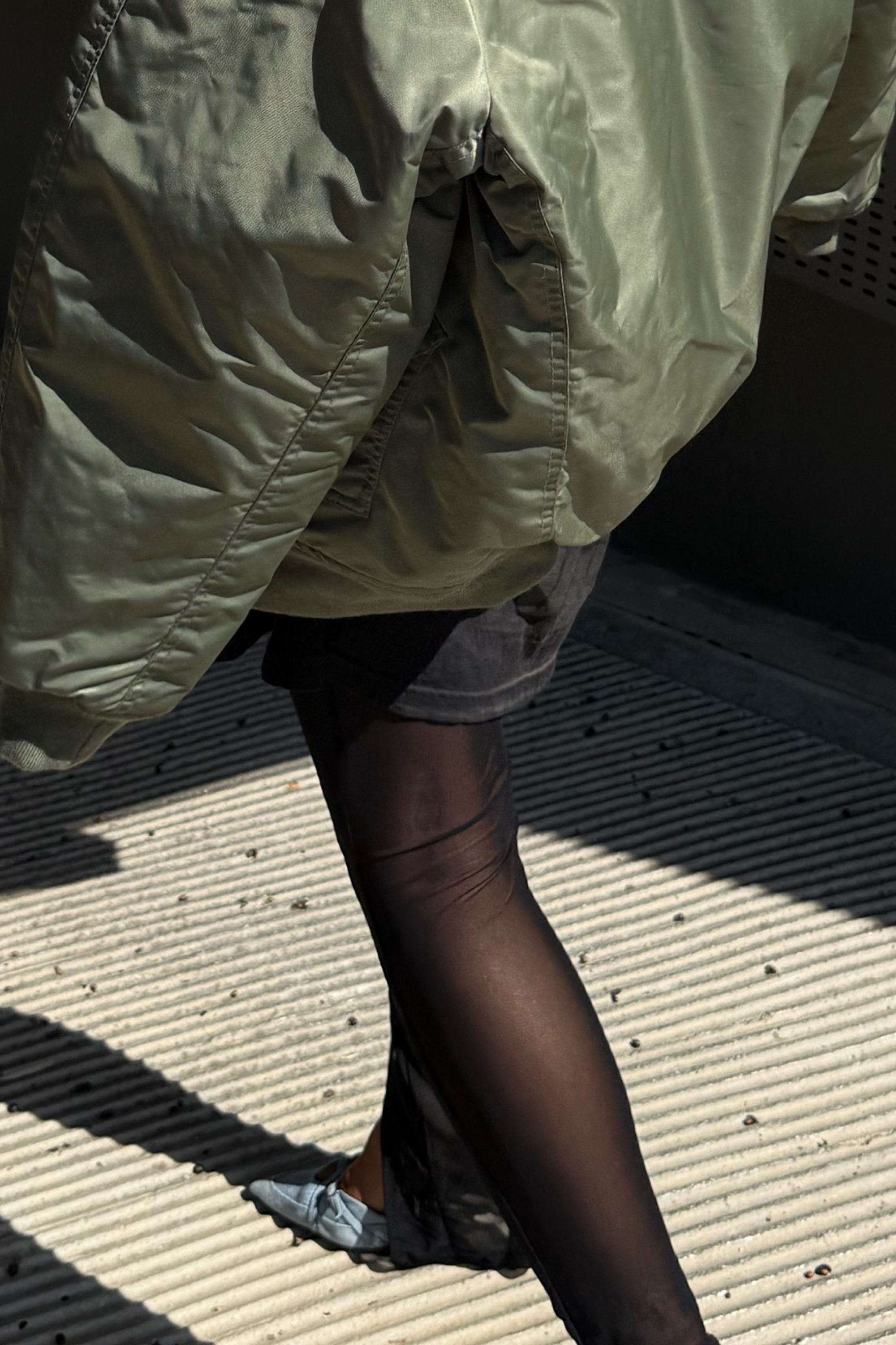 • Sheer black leggings with a sleek, modern look