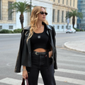 Make a statement with this cropped garter tank top that blends streetwear edge with modern minimalism. It’s a bold, versatile piece that elevates any outfit. Perfect for layering or letting it shine on its own.
