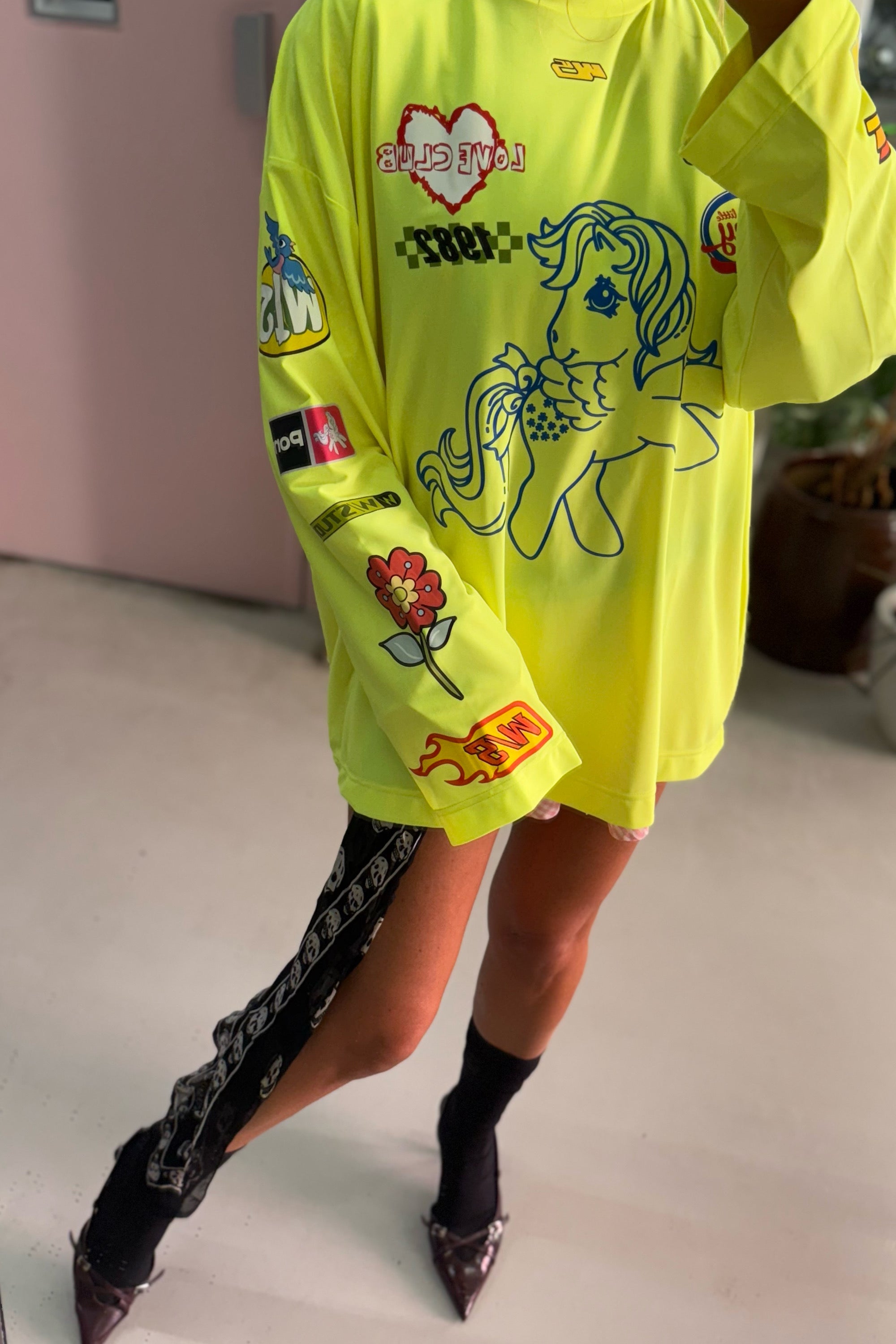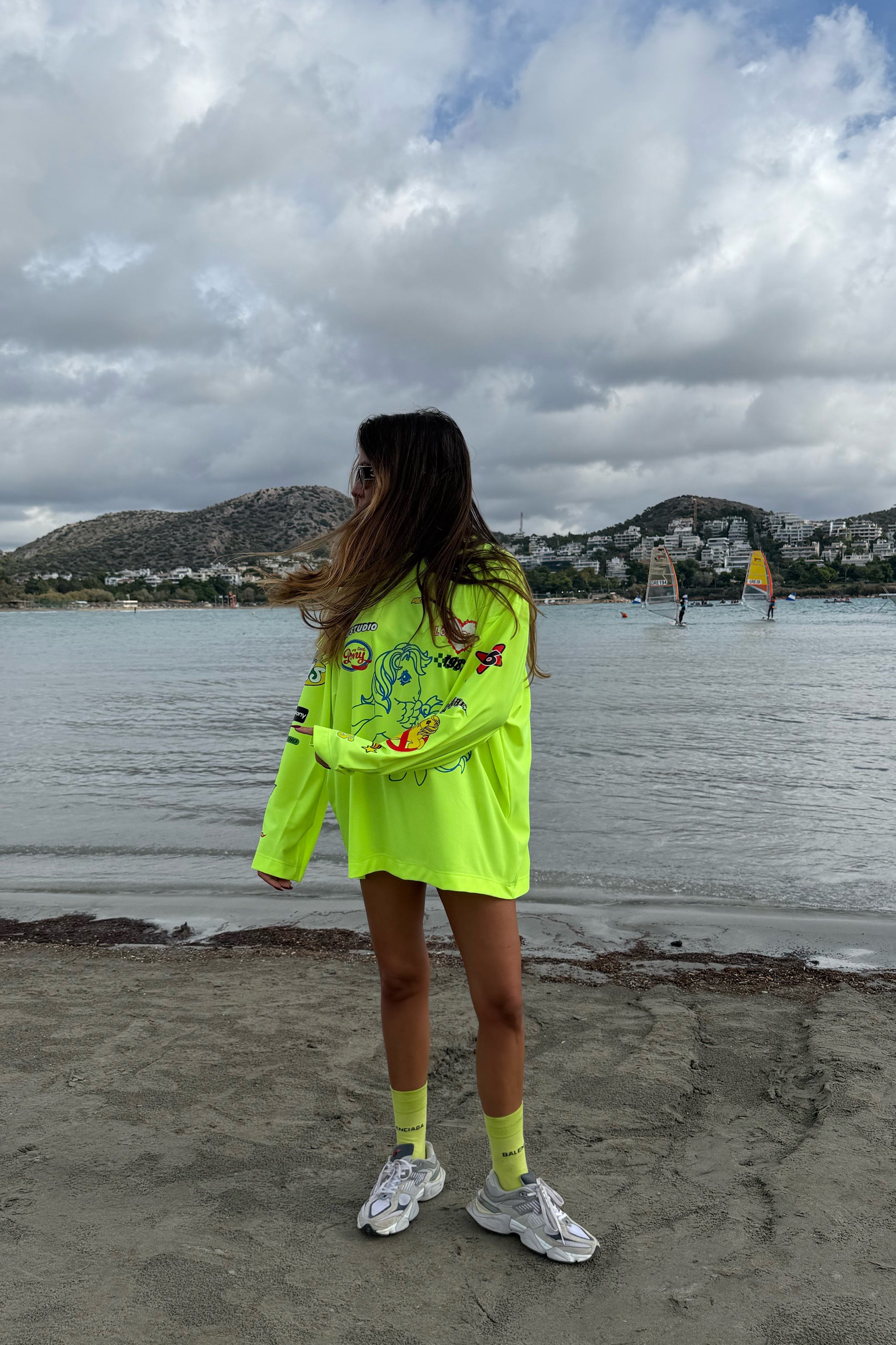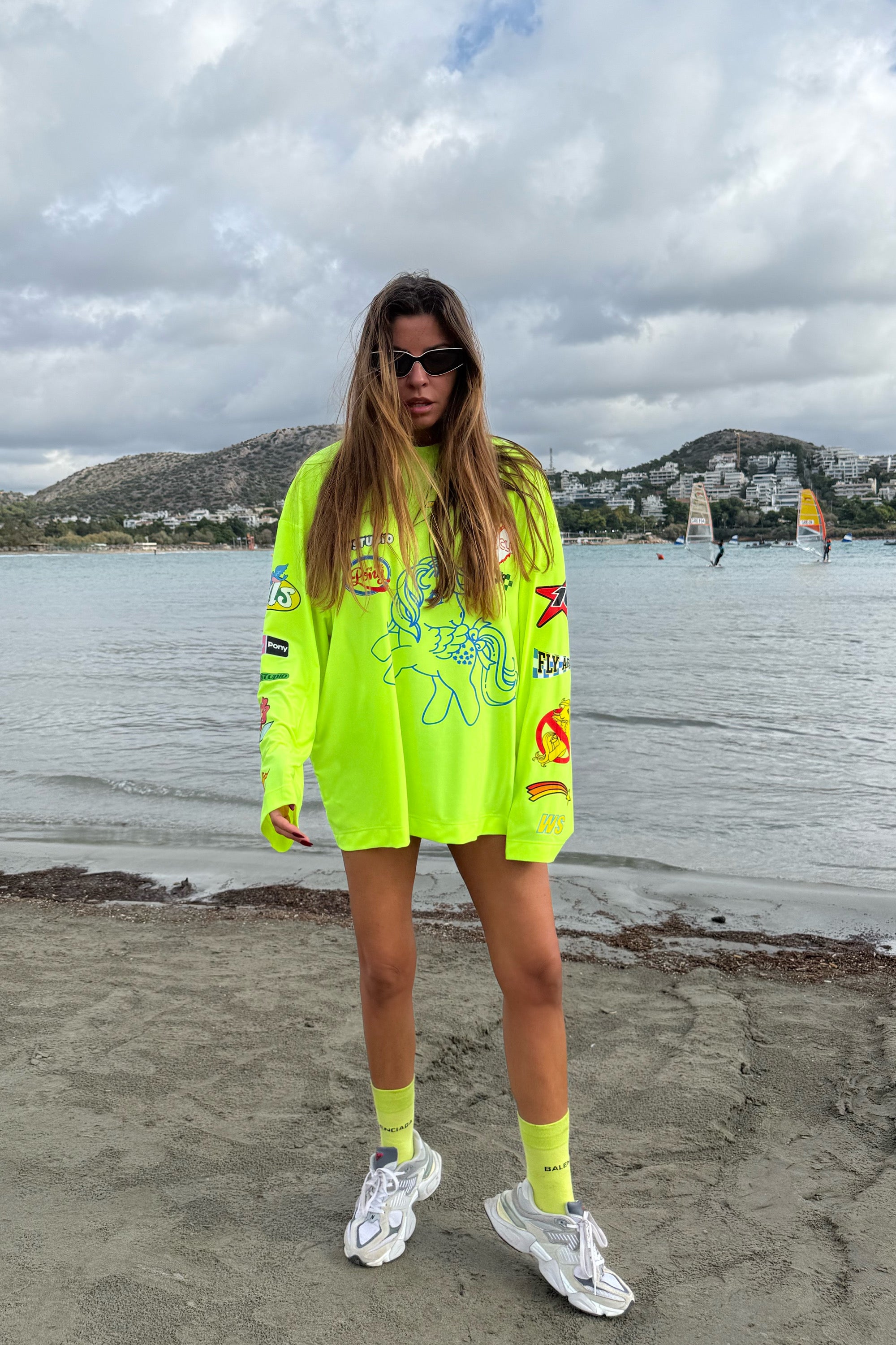 A vibrant expression of playful nostalgia and bold style. This piece turns everyday wear into a statement of color and character. Fun, fearless, and unapologetically energetic.