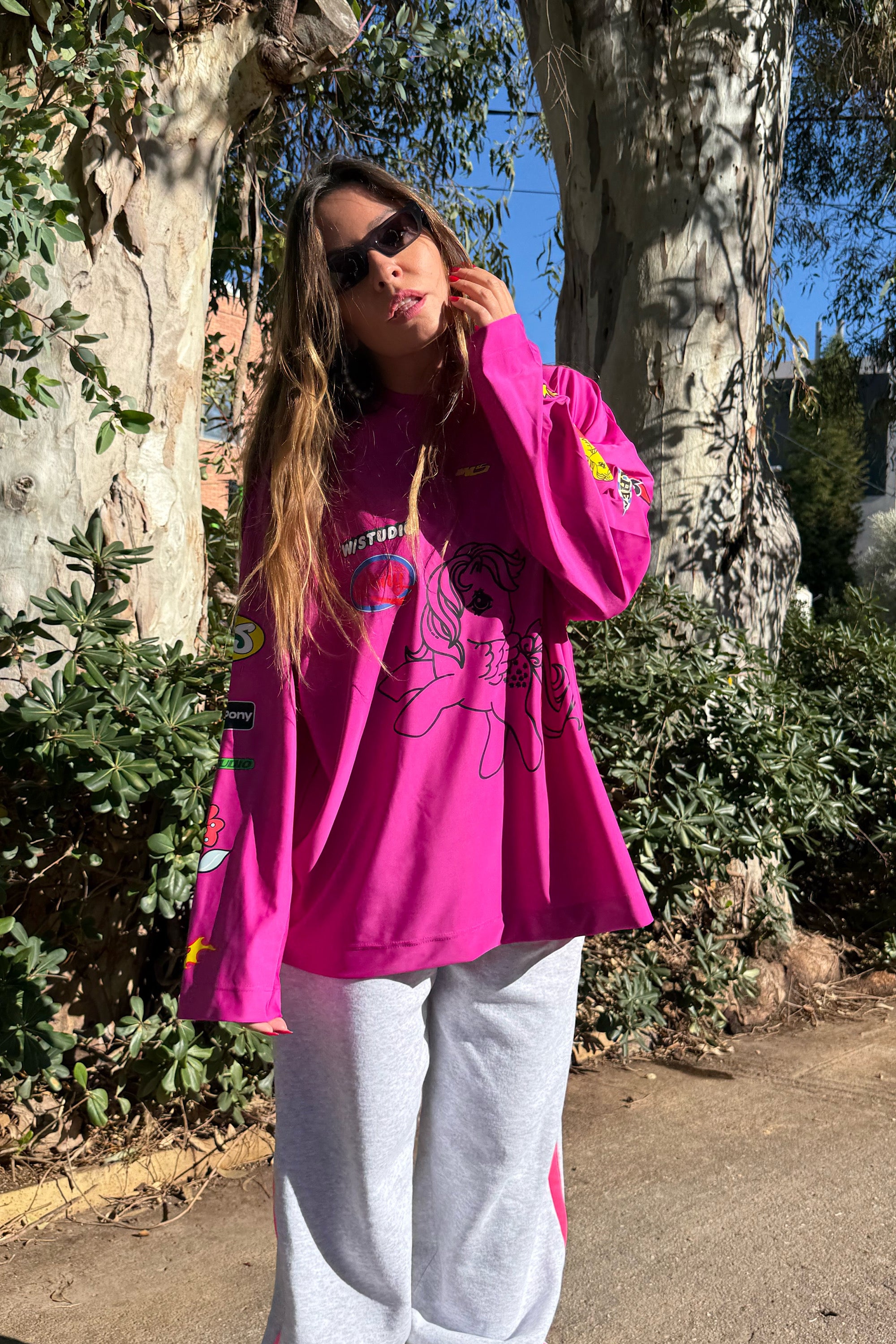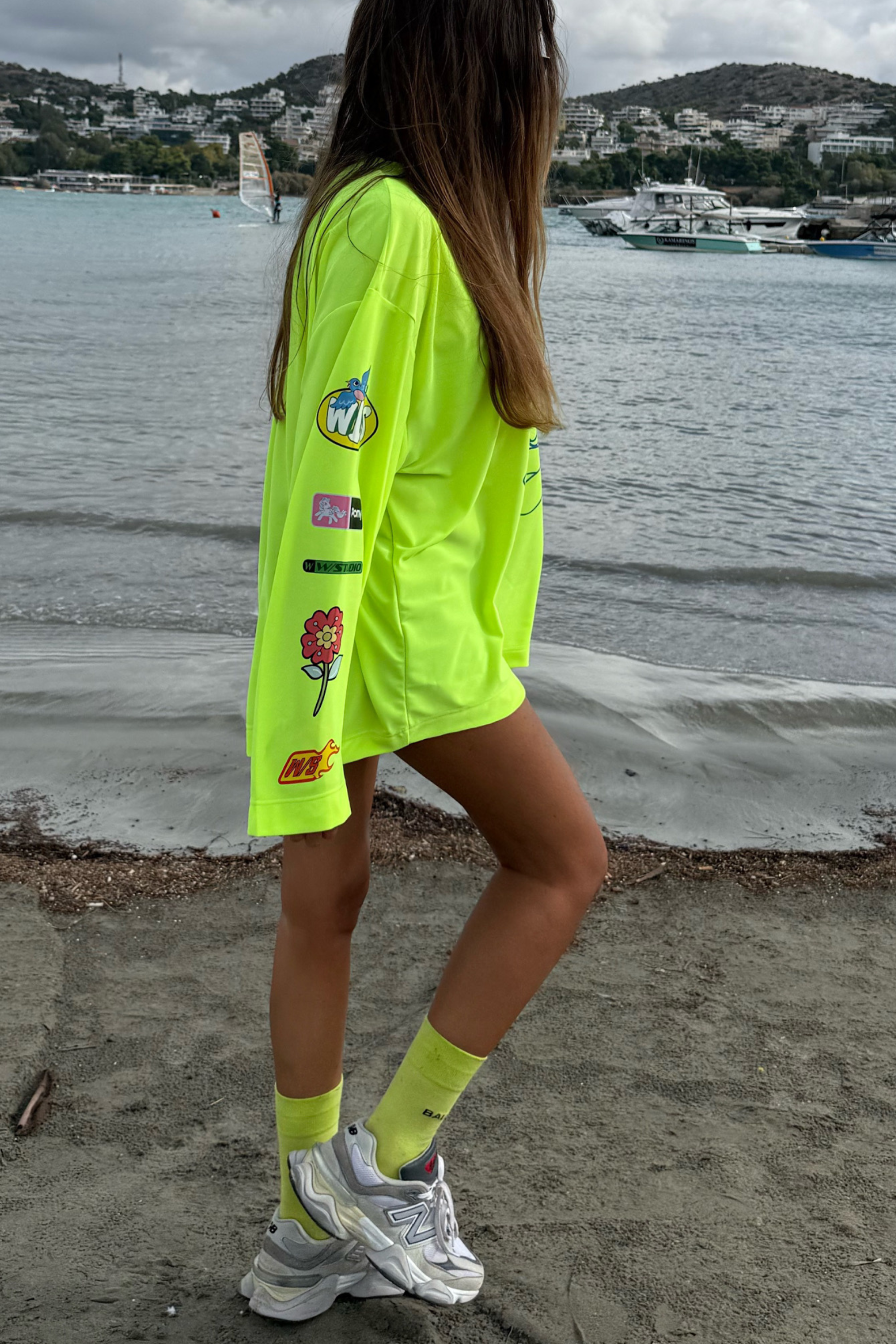 • Neon fluo yellow oversized long sleeve sport t-shirt, also available in fluo pink, for a bold, playful look