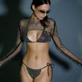 - Classic triangle bikini silhouette with a shimmering rhinestone finish.