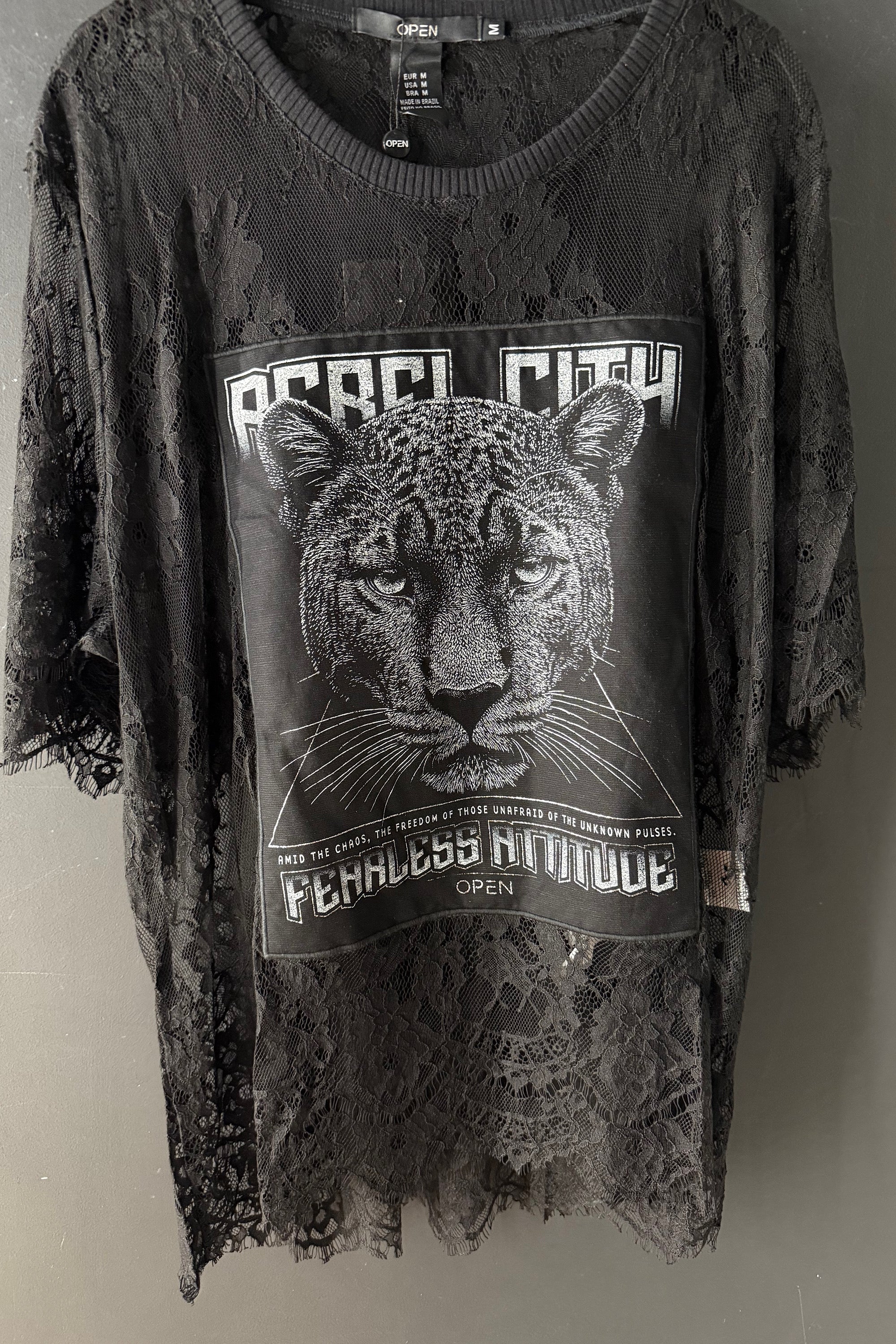 A fusion of softness and strength, this t-shirt channels a rebellious spirit through a delicate lens. It plays with contrast and emotion, capturing the tension between raw energy and quiet allure. A statement of individuality in motion.