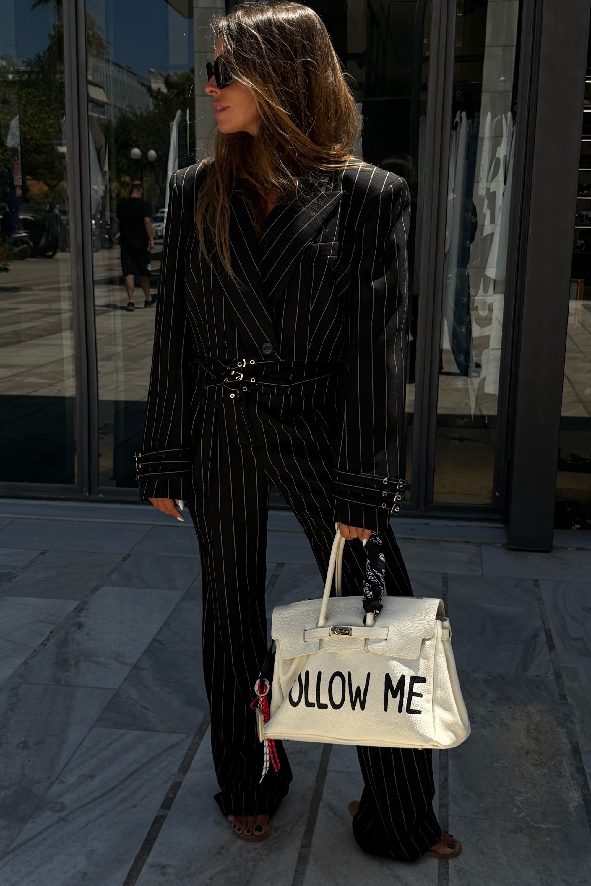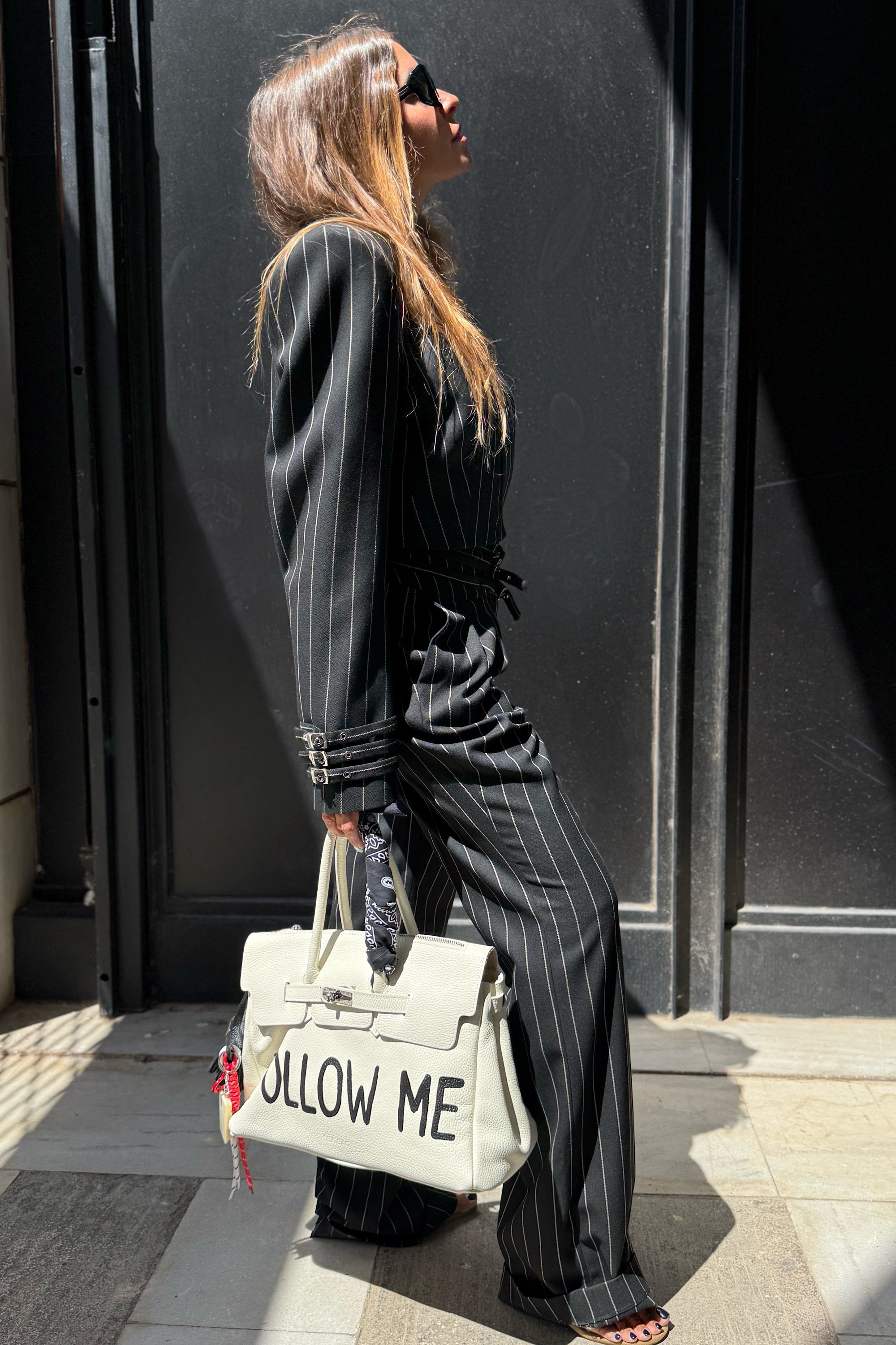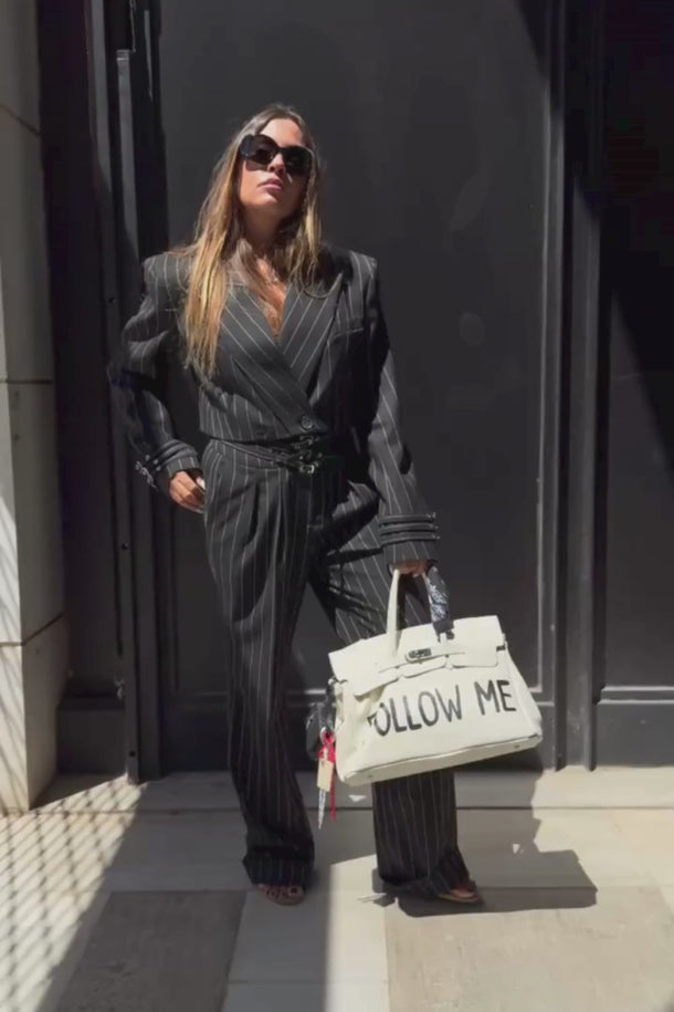 This blazer embodies a bold interplay of structure and attitude, redefining classic tailoring with a modern twist. Its cropped form creates a striking proportion that transitions seamlessly from sharp sophistication to effortless edge.