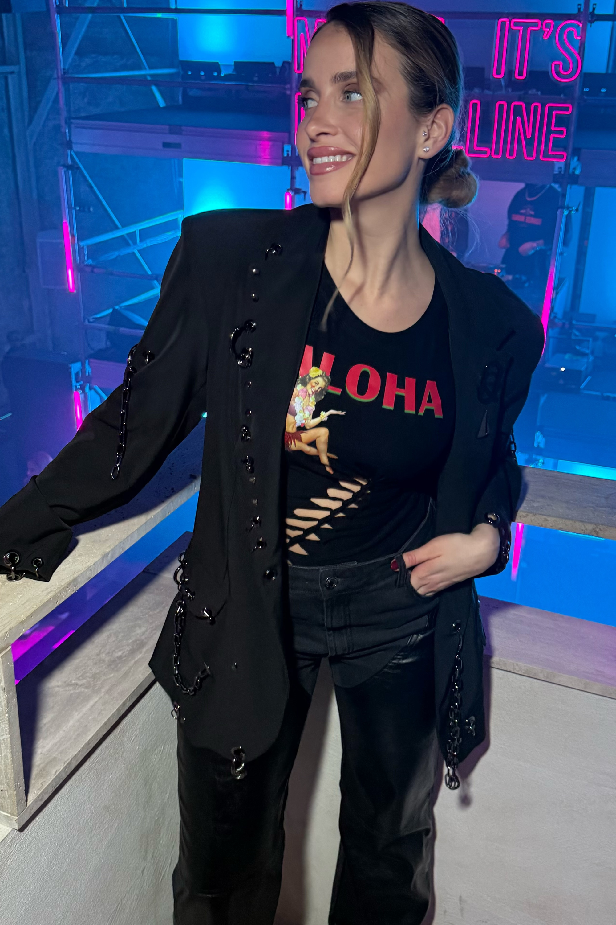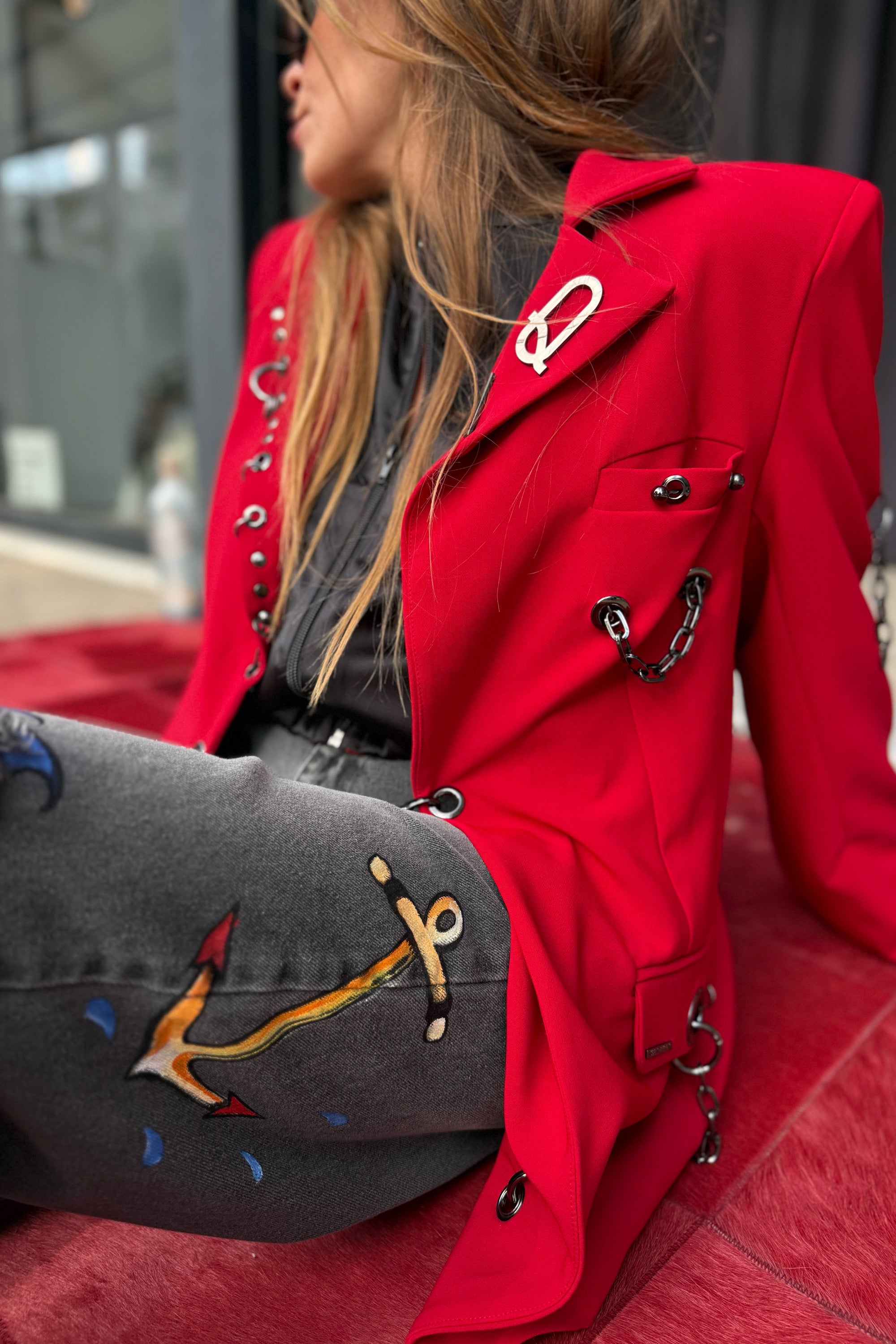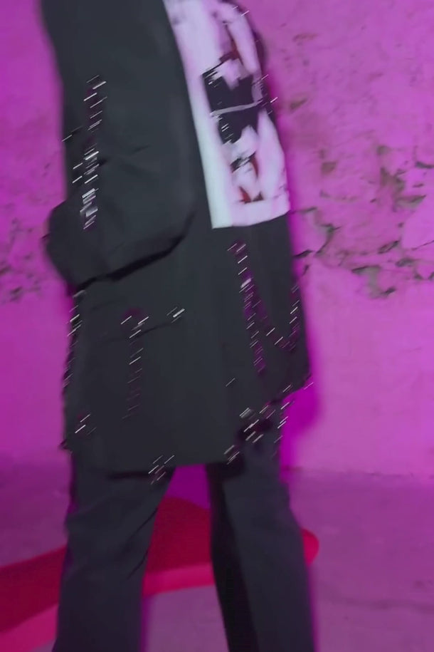 This blazer exudes unapologetic confidence and modern edge, turning classic tailoring into a statement piece. Designed for those who embrace bold, fearless style, it elevates any outfit with a touch of rebellion. A standout garment that commands attention and defines contemporary sophistication.