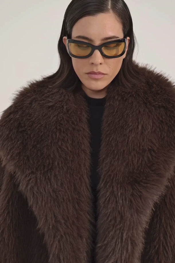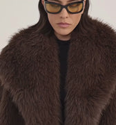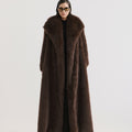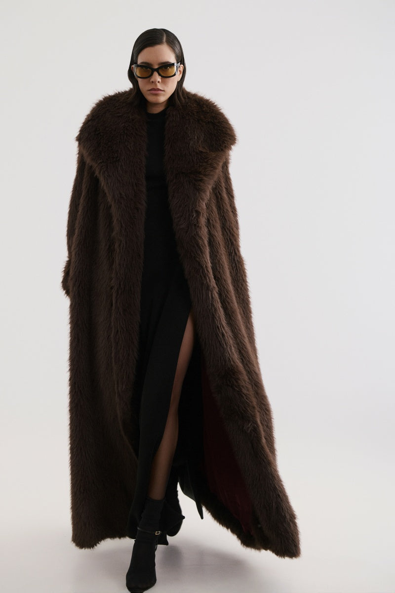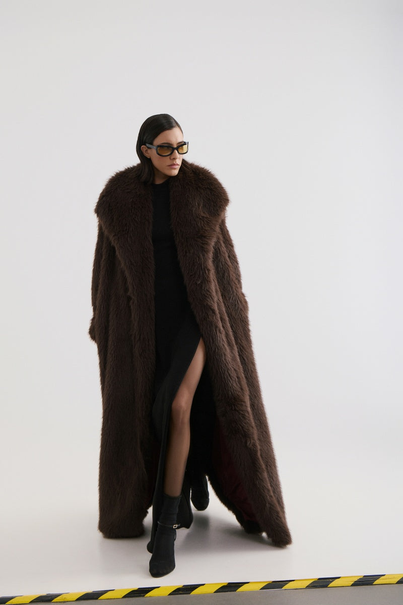 This floor-length coat makes an unapologetic statement of drama and sophistication. A piece that captures the essence of bold winter glamour, it’s designed to elevate any look with effortless presence. Iconic outerwear reimagined for the modern wardrobe.