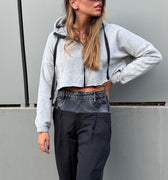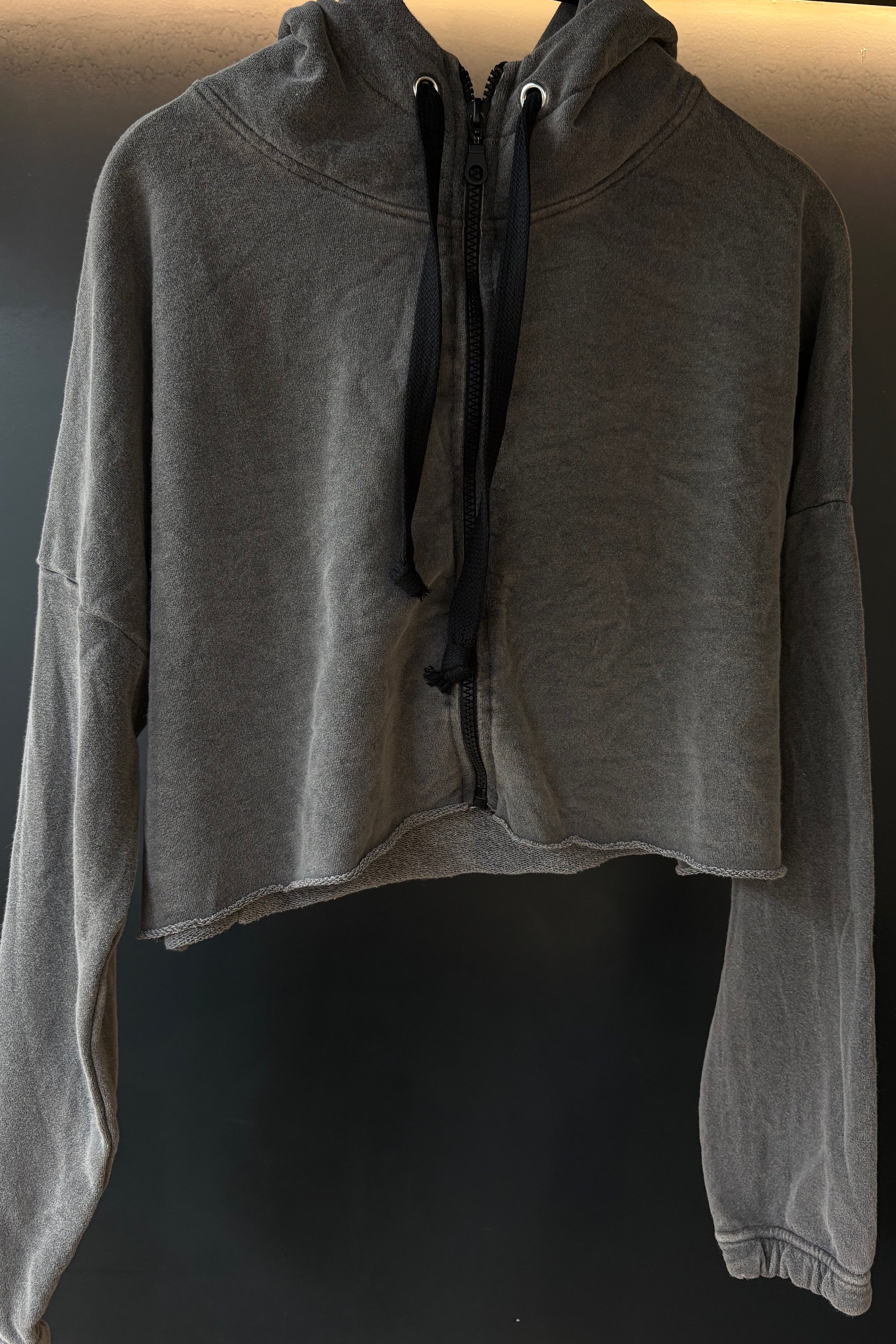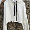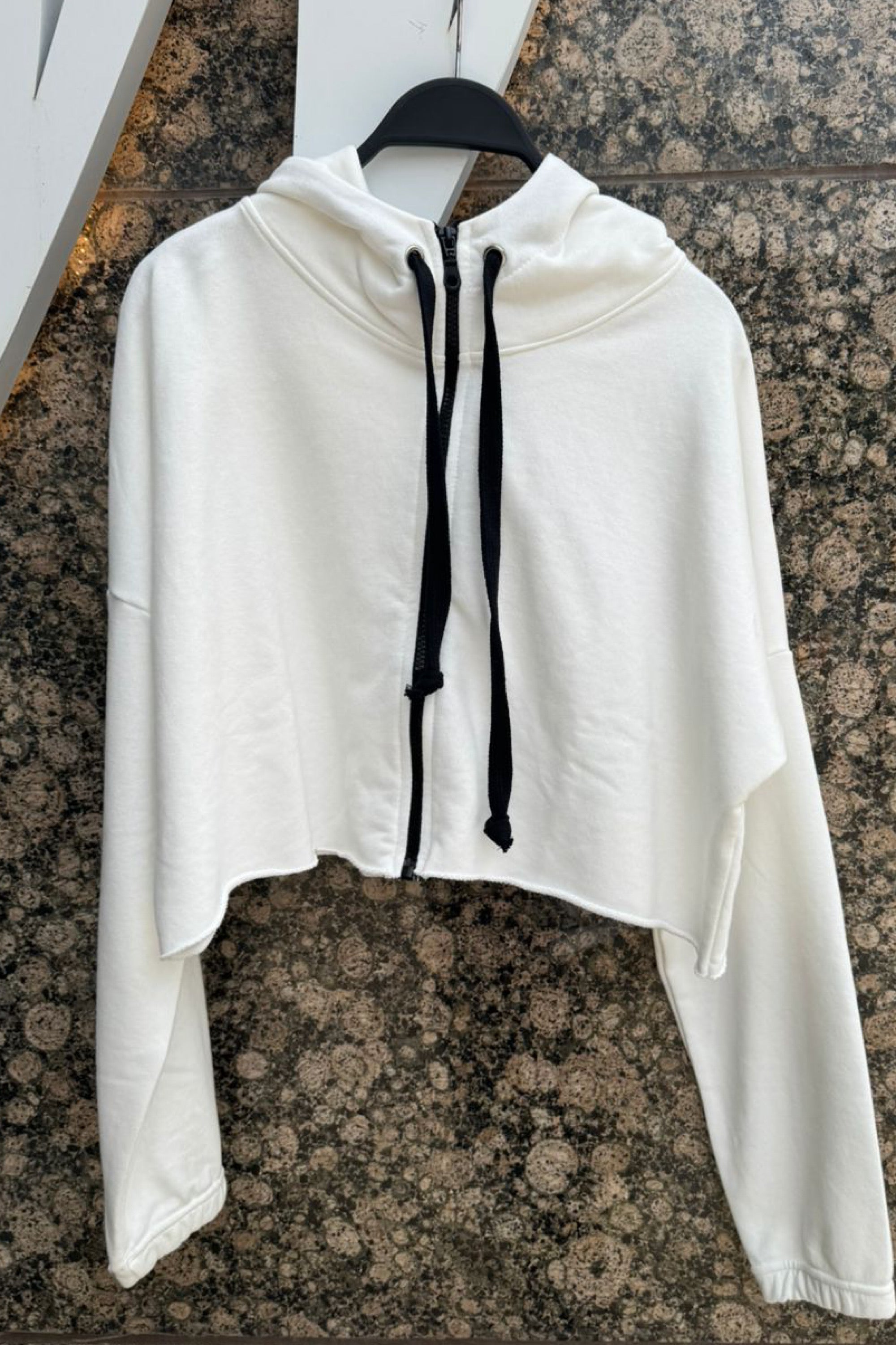 • Cropped hoodie with a raw, unfinished hem for a laid-back, edgy look