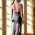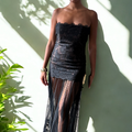 A black lace dress that commands attention with sleek sophistication and modern flair. Perfect for turning heads, it embodies effortless elegance with a contemporary edge. A show-stopping piece for nights that call for statement style.