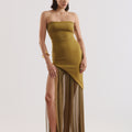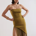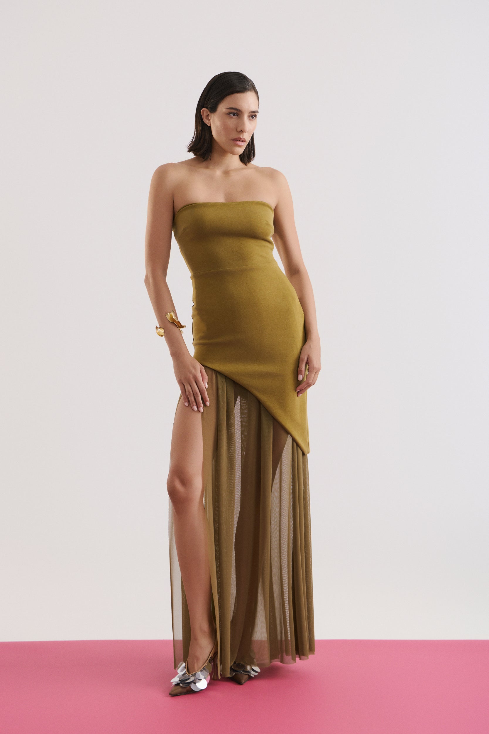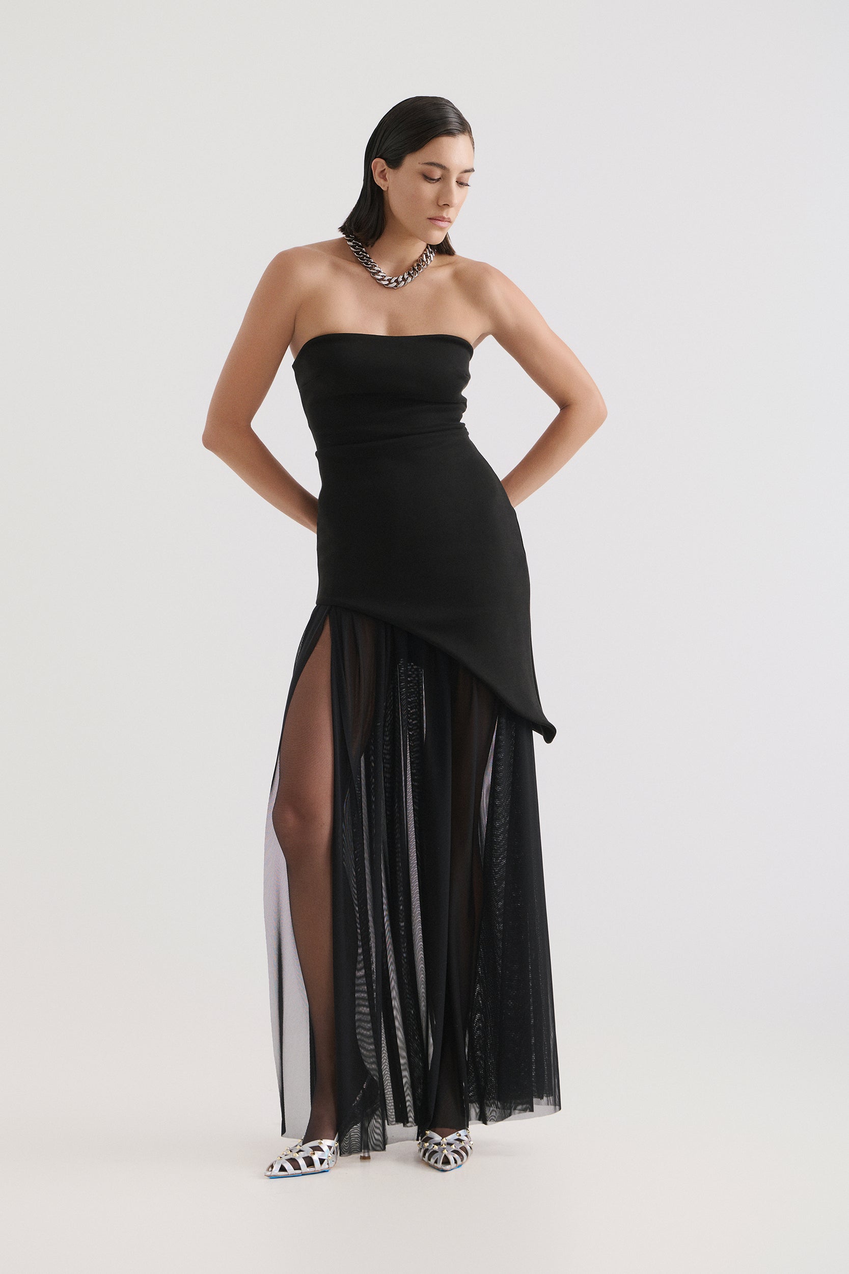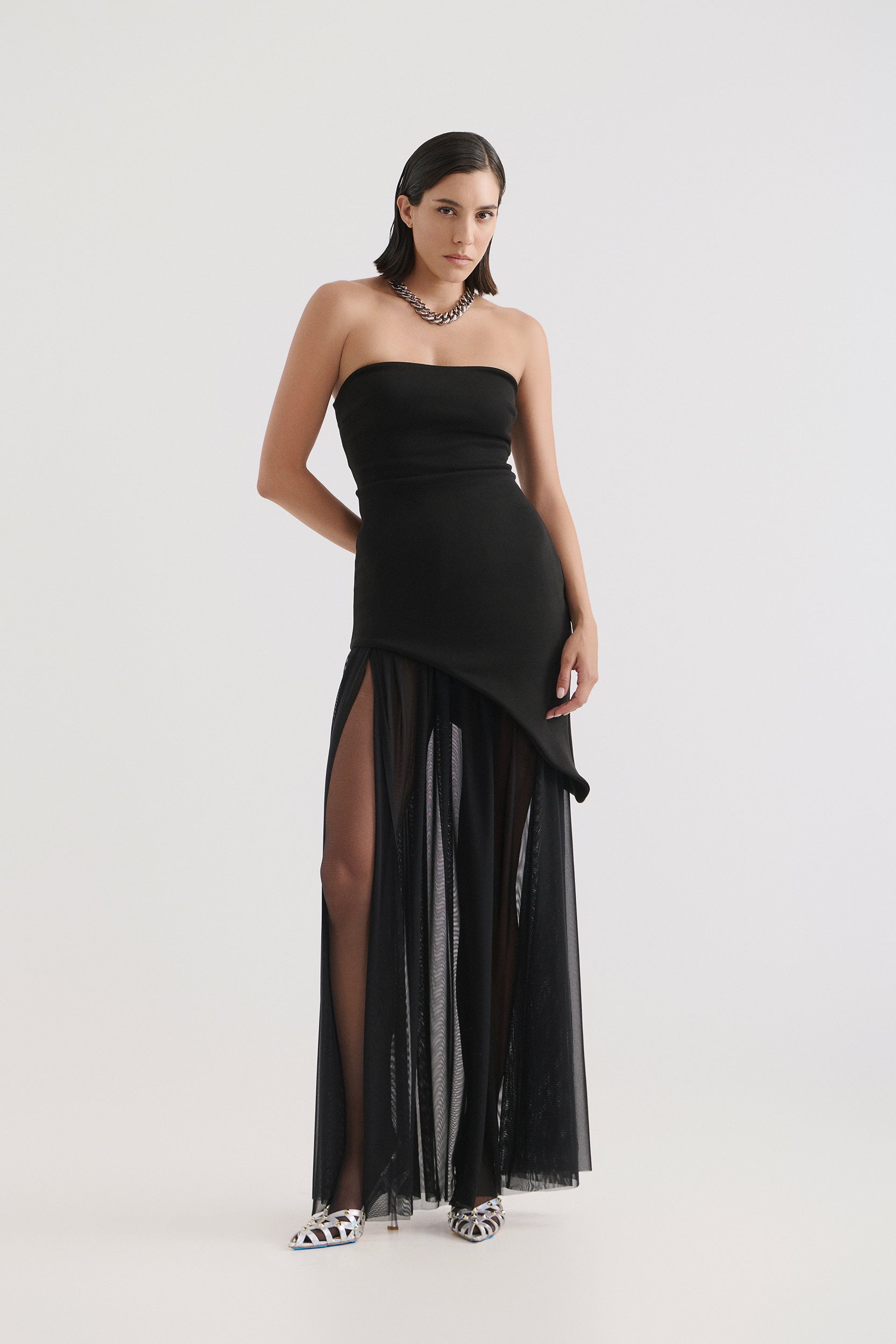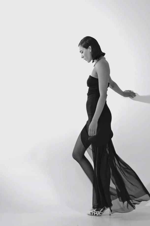 The Soleil Dress redefines modern glamour with a confident, avant-garde edge. Designed to command attention, it fuses contemporary structure with a dramatic sense of movement. A statement piece that effortlessly transitions from runway allure to unforgettable evening presence.