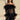 A black tulle body meets high-waisted pinstripe trousers in a dialogue of structure and fluidity. Feather touches and loose threads reframe classic tailoring with modern tension. An ensemble that speaks refinement through undone precision.
