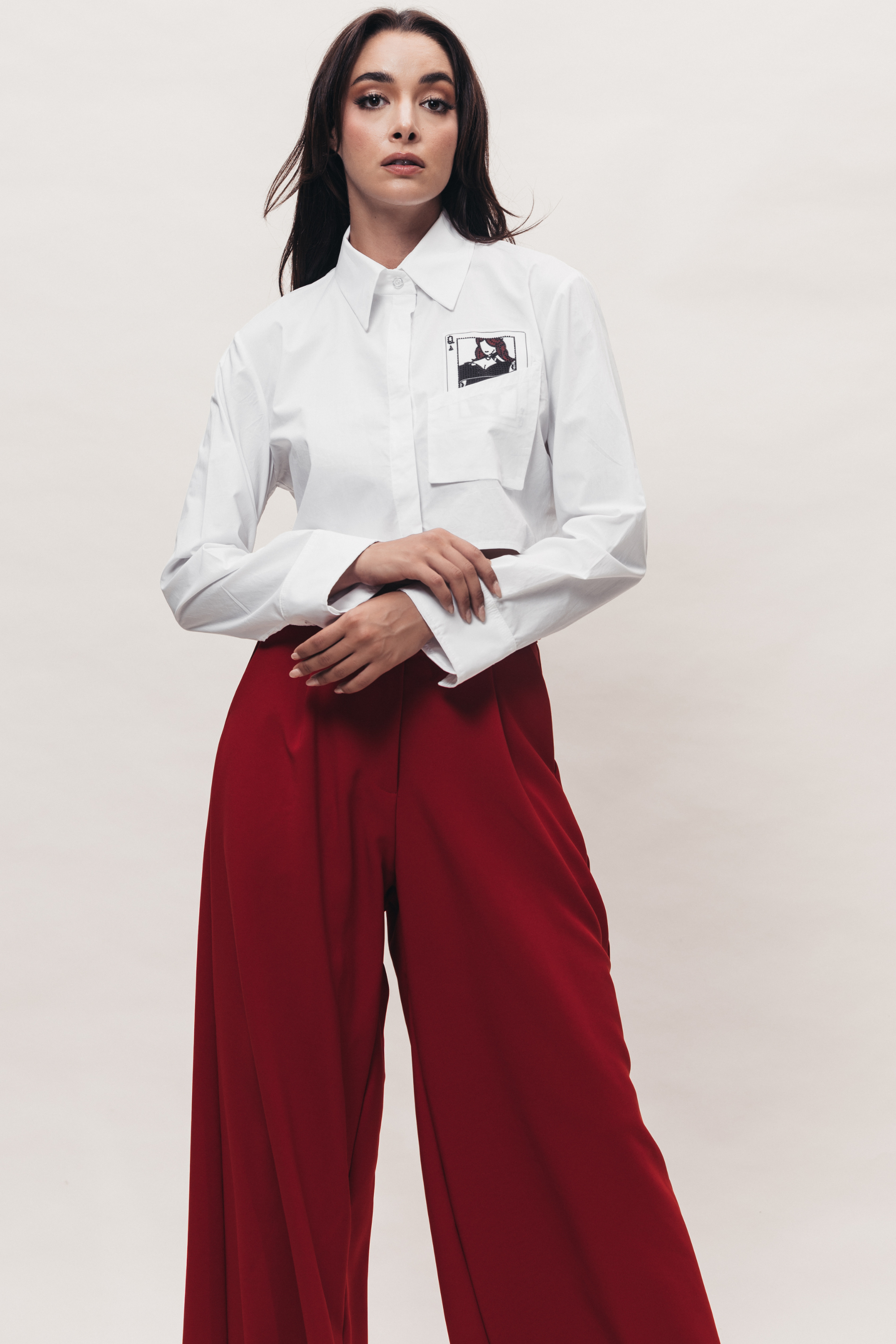 Make a statement with this cropped shirt that blends playful graphics with modern edge. It’s a versatile piece that elevates casual looks with style and attitude. Perfect for mixing and matching with bold or layered outfits.