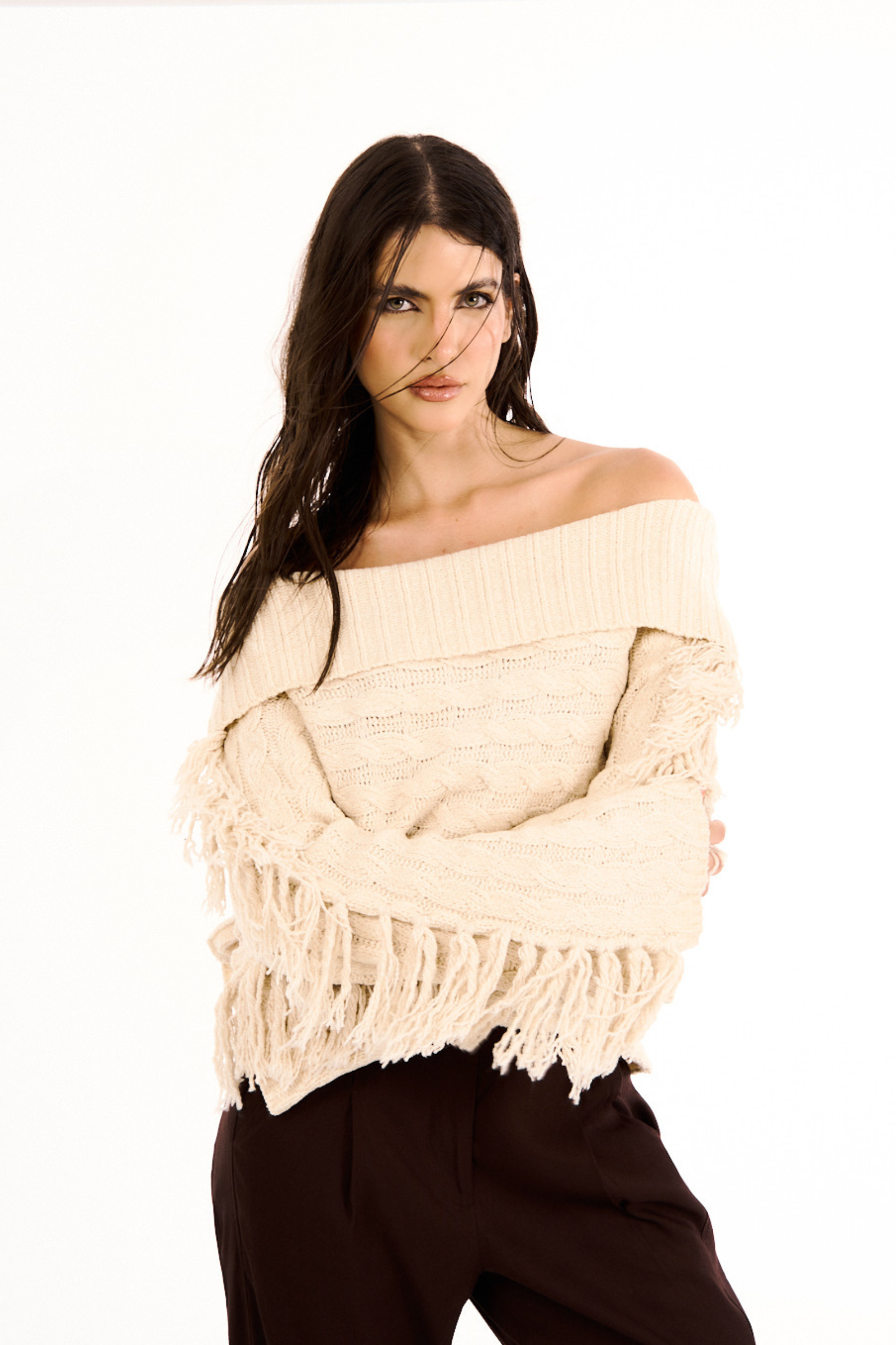 This sweater evokes a sense of effortless sophistication with a touch of bohemian charm. Designed for ease and expression, it embodies modern femininity with a relaxed, elevated attitude. A piece that moves gracefully between comfort and style.