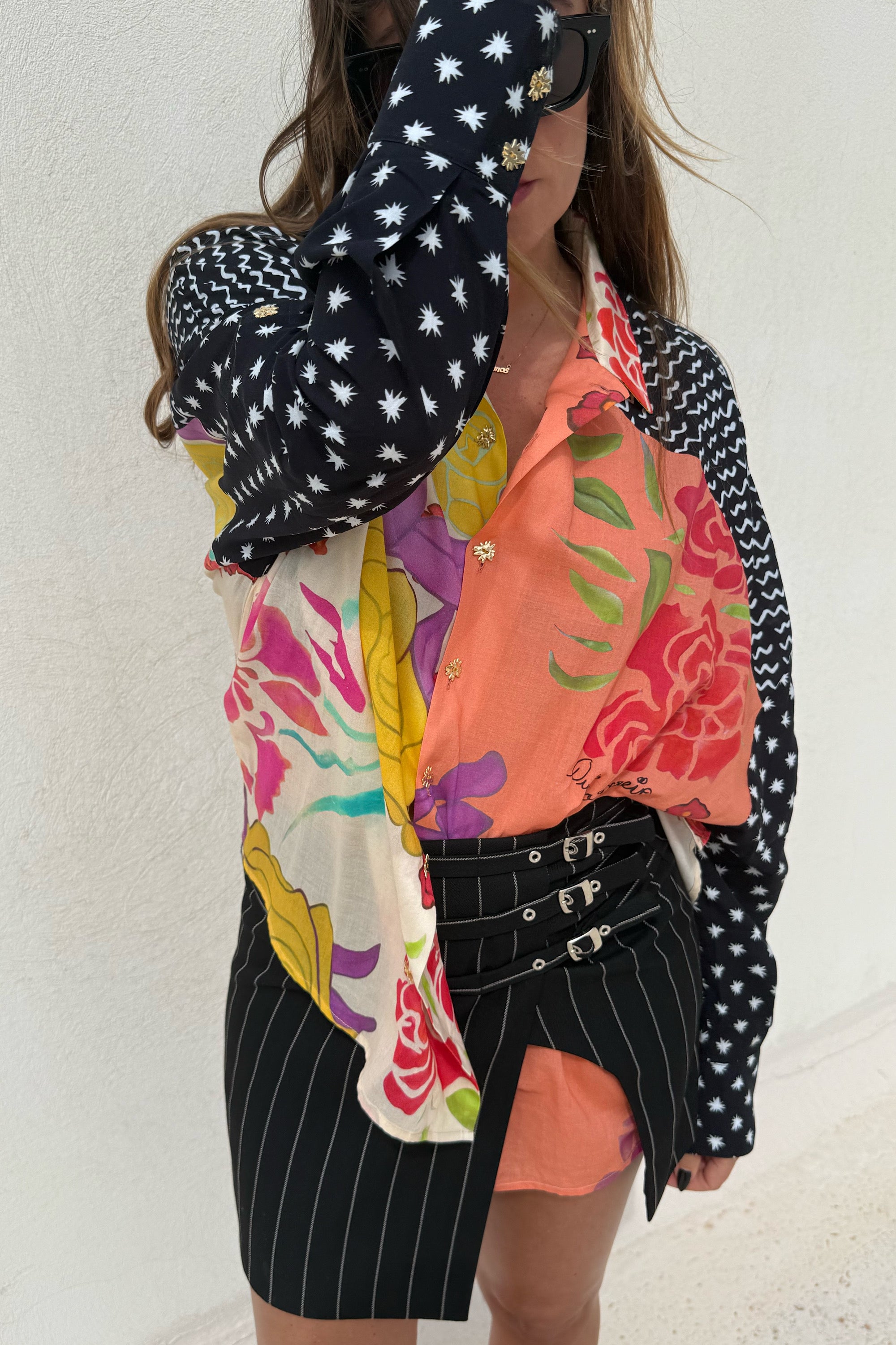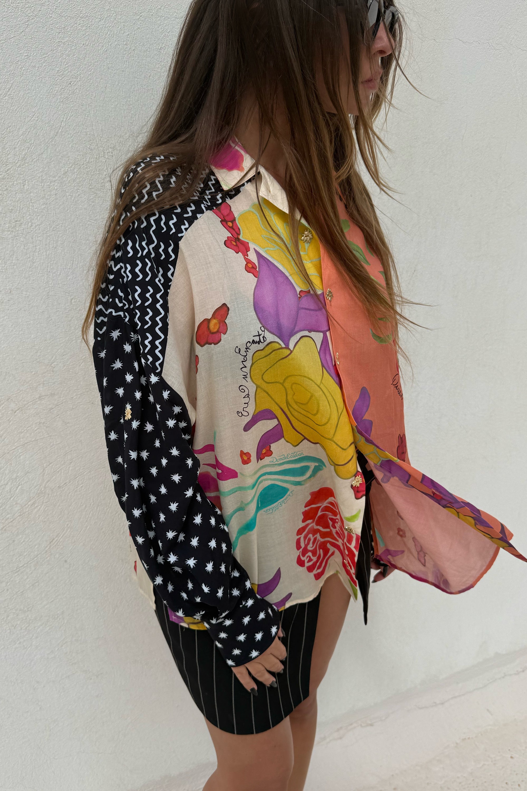 A flowy printed shirt that brings an effortless sense of artistry to modern dressing. Designed for a refined yet relaxed aesthetic, it moves seamlessly between statement and everyday wear. A standout piece for those who appreciate fashion with a creative soul.
