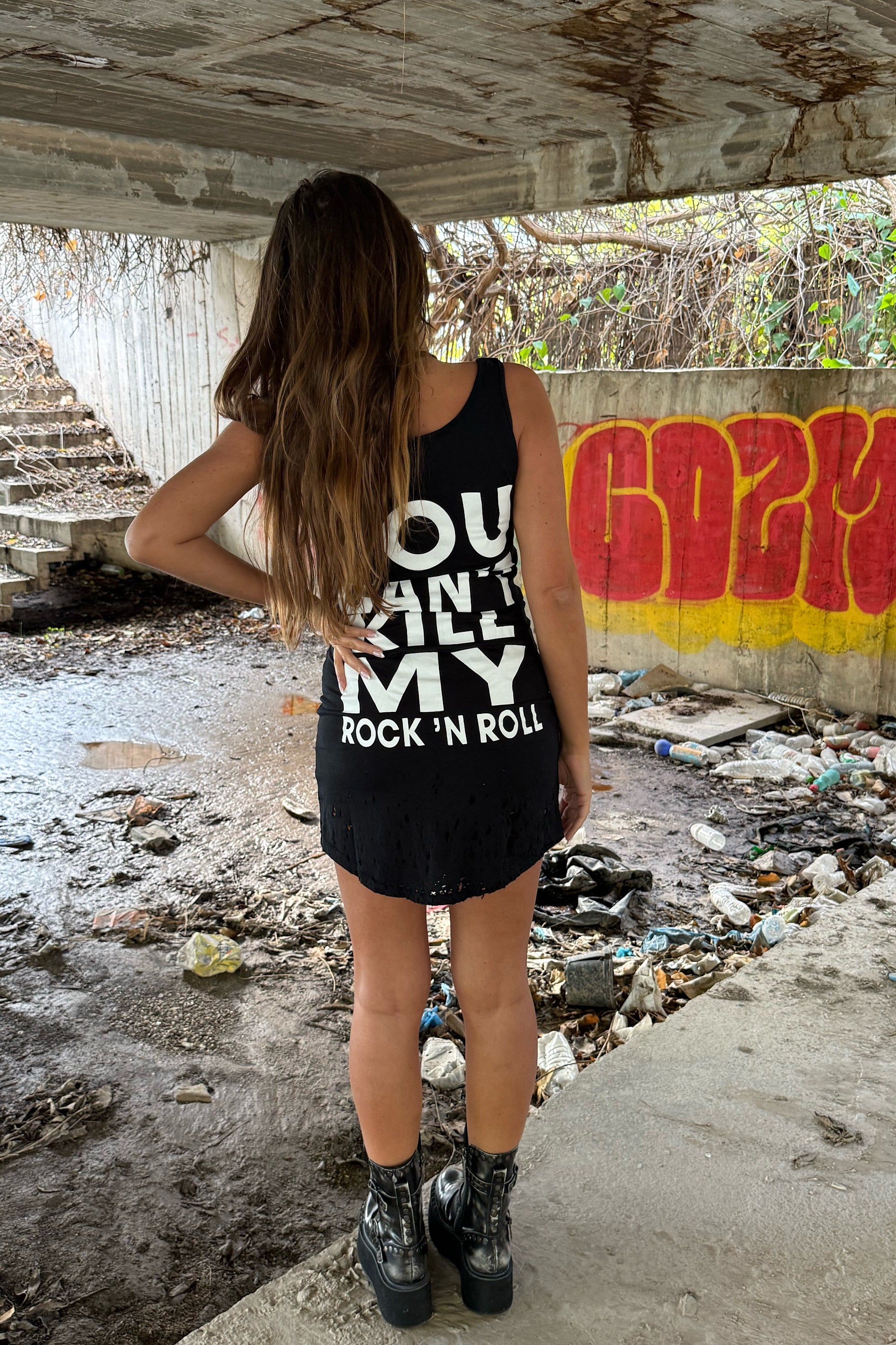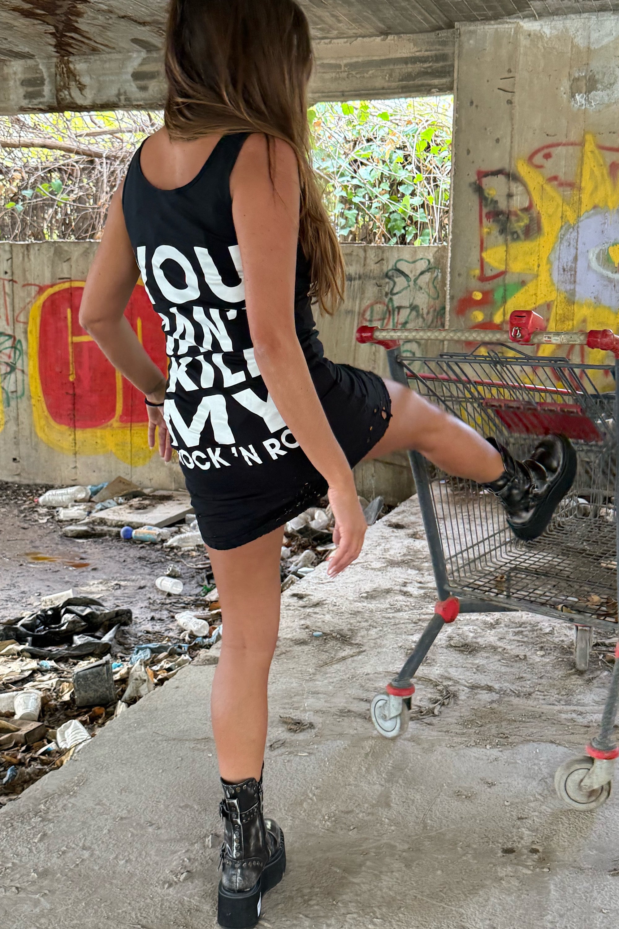 This mini tank dress embodies a fierce, untamed spirit that turns simplicity into power. Its rock-leaning attitude feels both rebellious and effortlessly modern, making it a piece that commands presence without trying. A true expression of confidence in motion.